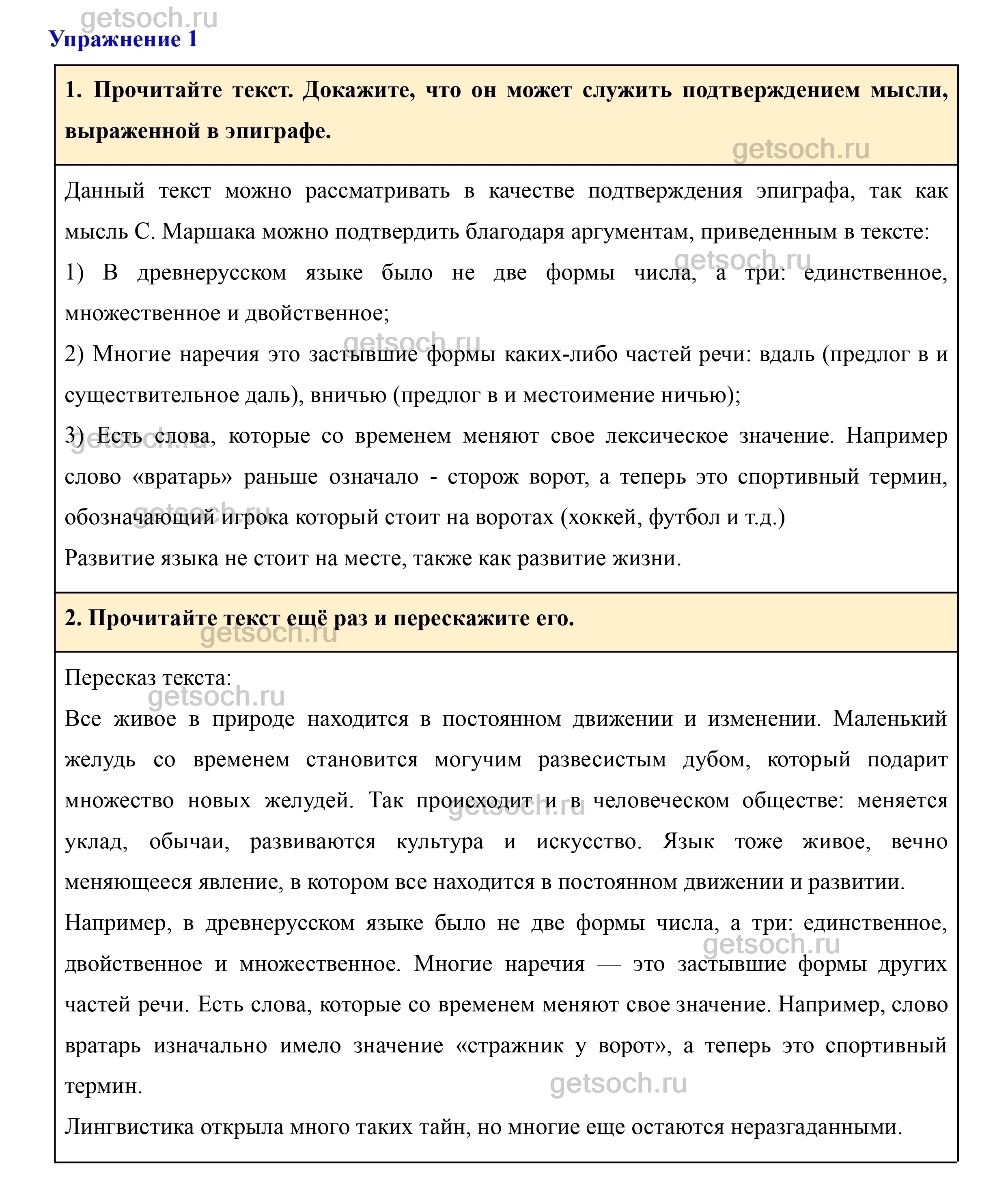 Рассмотрим ответы на Упражнение 1 из учебника по русскому языку для 7 класса Разумовской