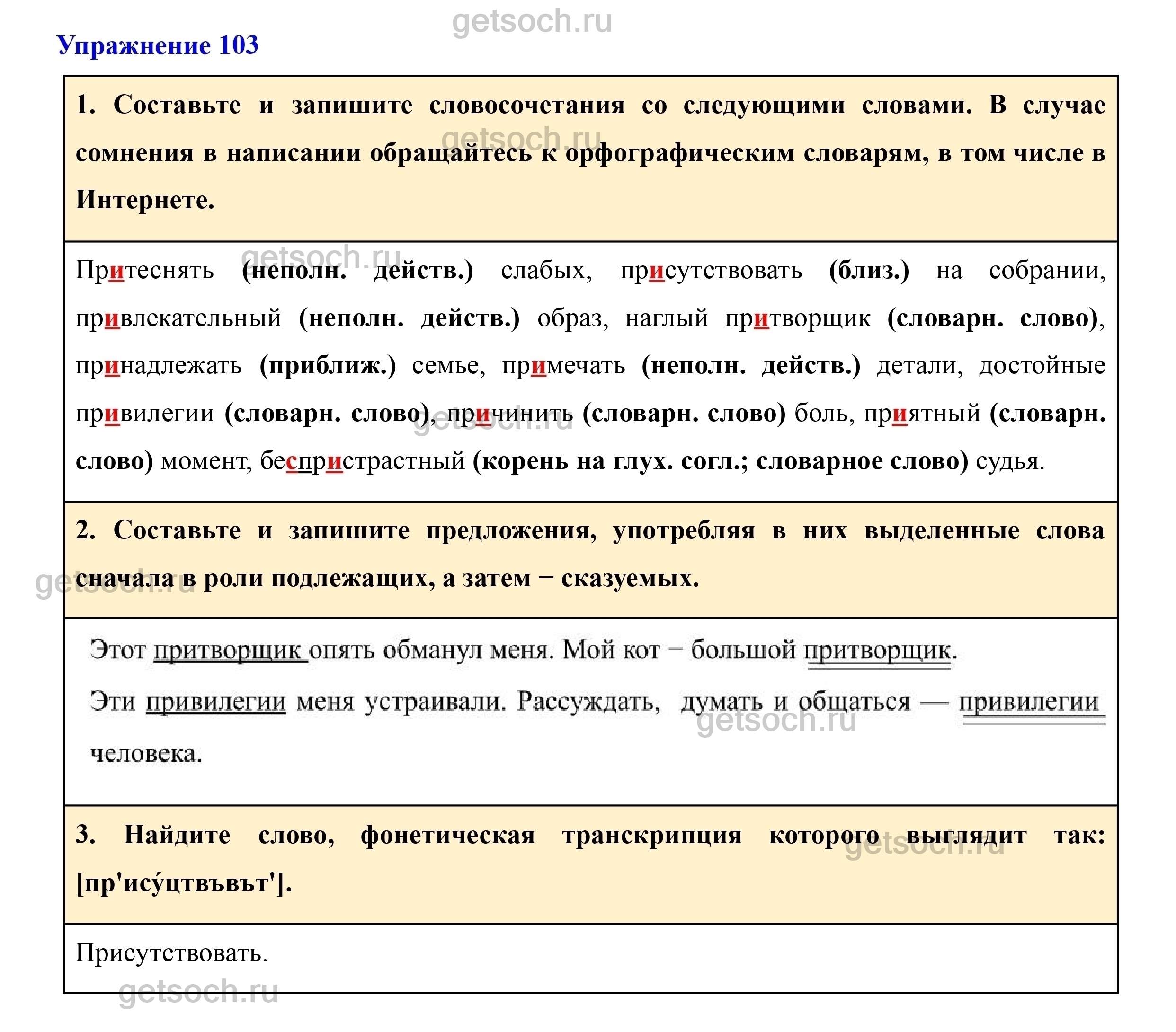 Рассмотрим ответы на Упражнение 103 из учебника по русскому языку для 7 класса Разумовской