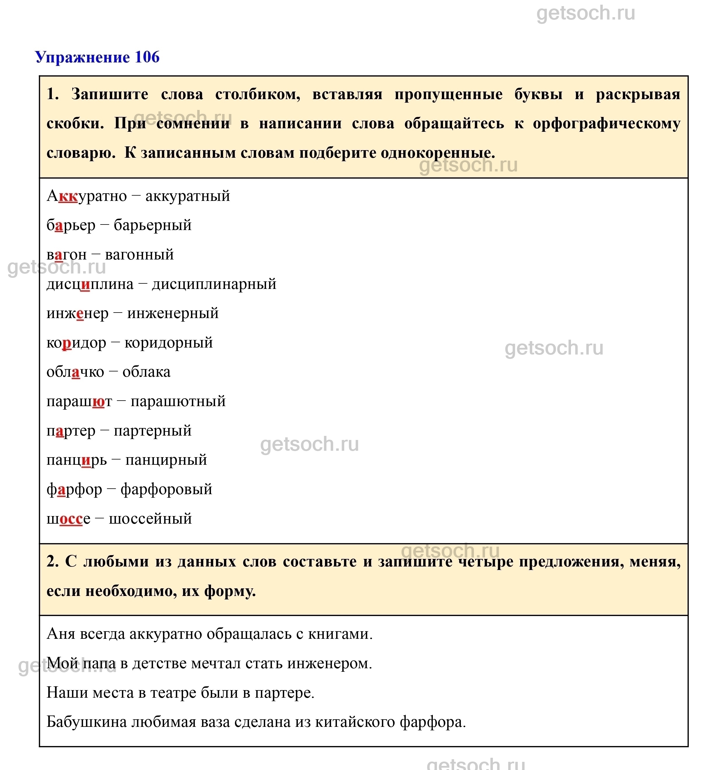 Рассмотрим ответы на Упражнение 106 из учебника по русскому языку для 7 класса Разумовской