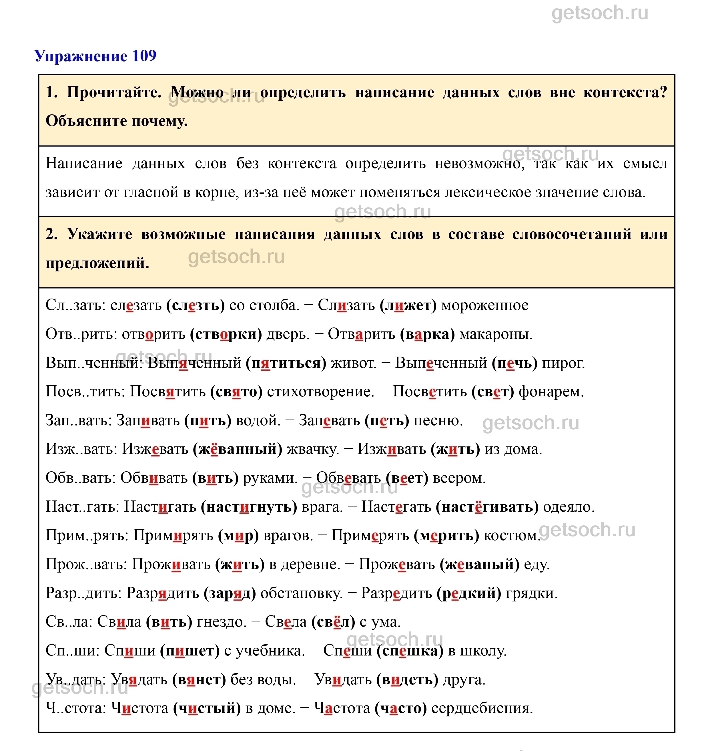 Рассмотрим ответы на Упражнение 109 из учебника по русскому языку для 7 класса Разумовской