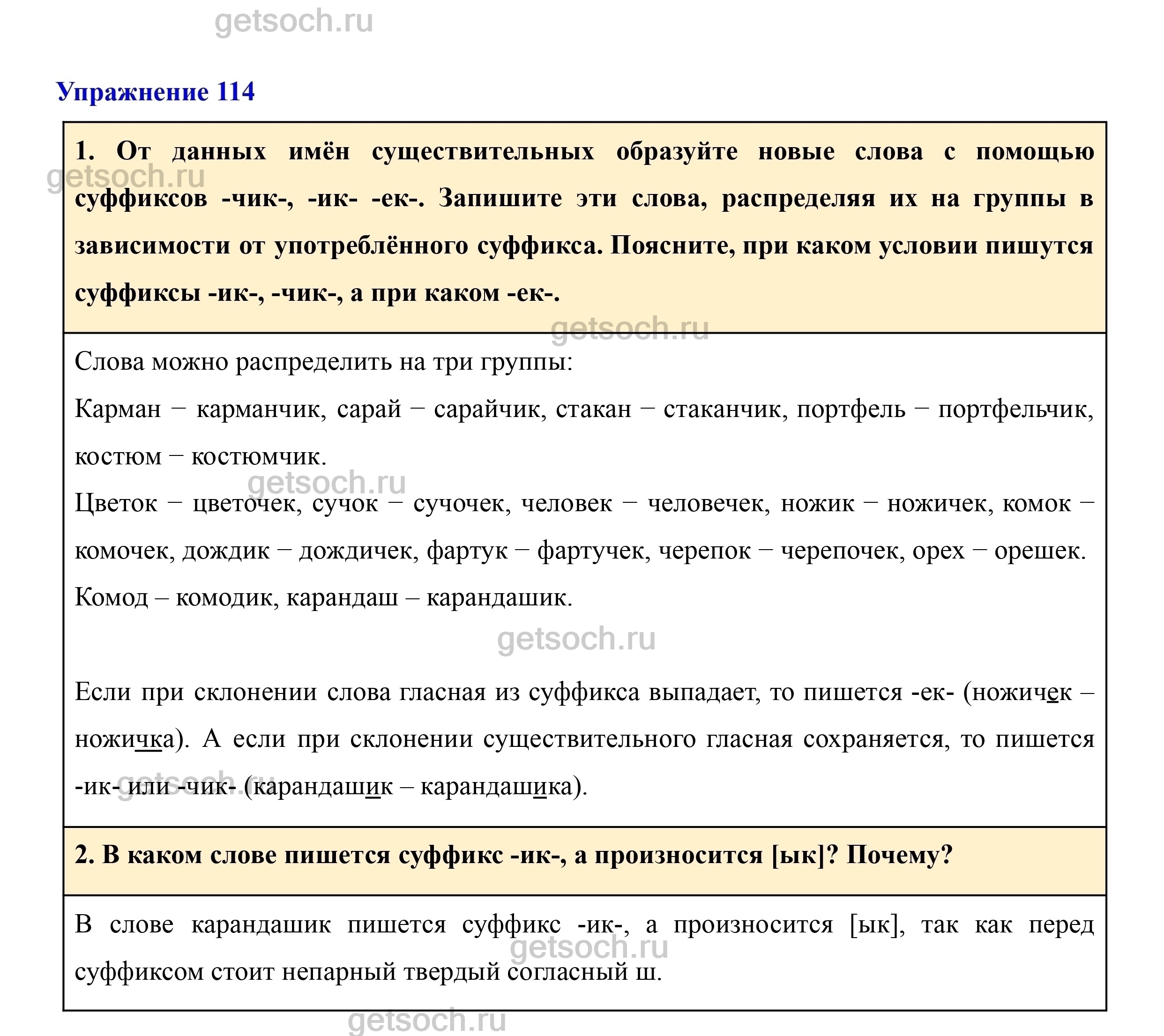 1. От данных имён существительных образуйте новые слова с помощью суффиксов -чик-, -ик- -ек-. Запишите эти слова, распределяя их на группы в зависимости от употреблённого суффикса. Поясните, при каком условии пишутся суффиксы -ик-, -чик-, а при каком -ек-.