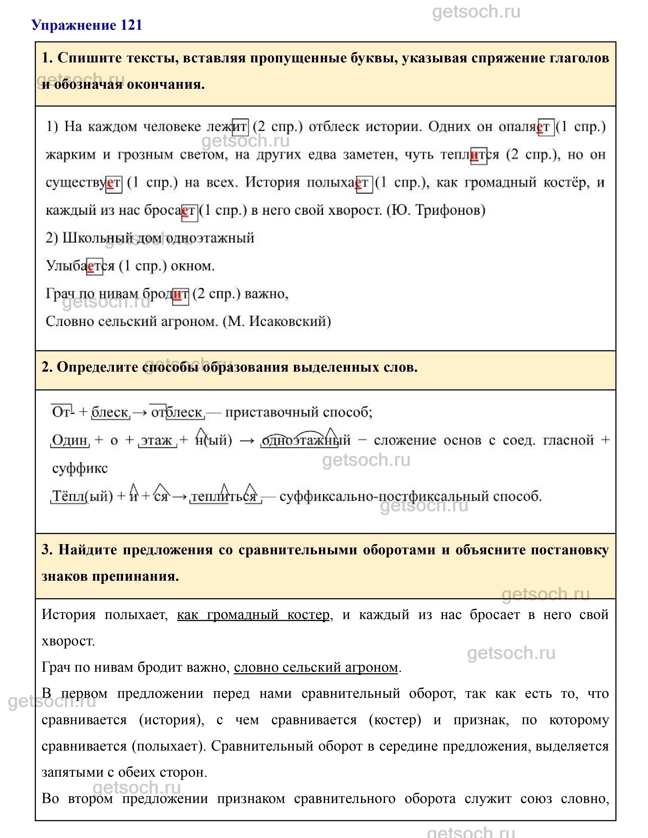 Рассмотрим ответы на Упражнение 121 из учебника по русскому языку для 7 класса Разумовской
