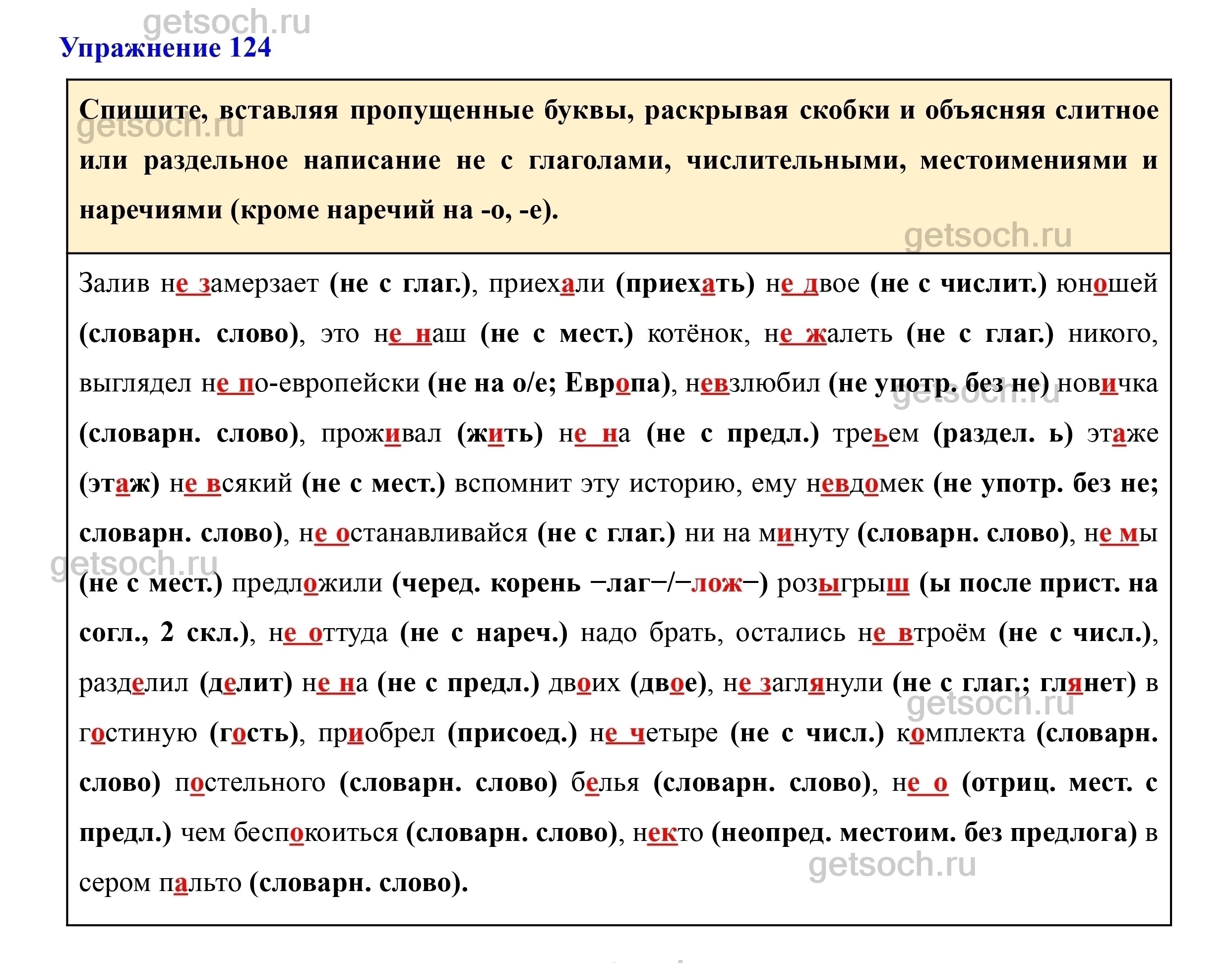 Рассмотрим ответы на Упражнение 124 из учебника по русскому языку для 7 класса Разумовской