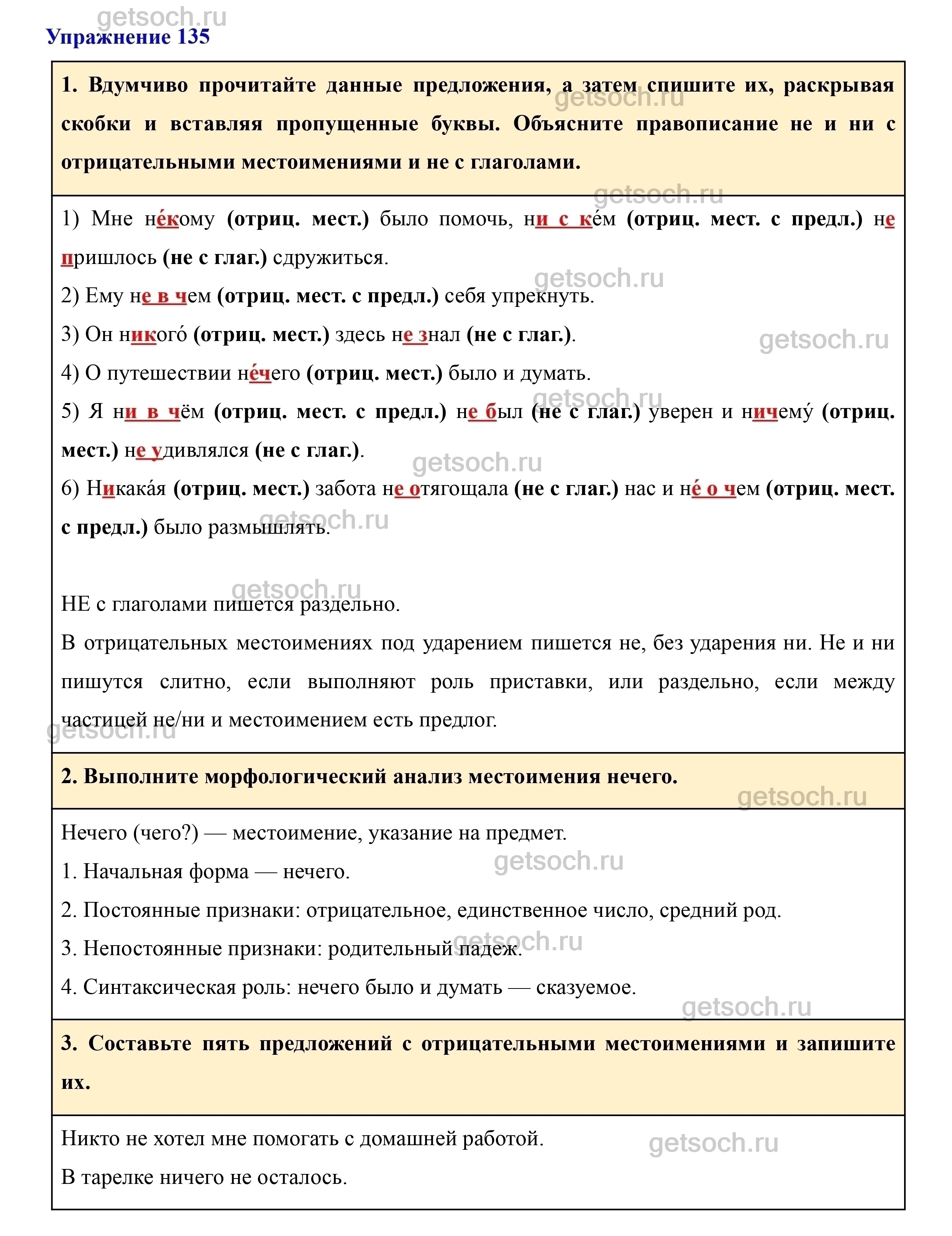 3. Составьте пять предложений с отрицательными местоимениями и запишите их.