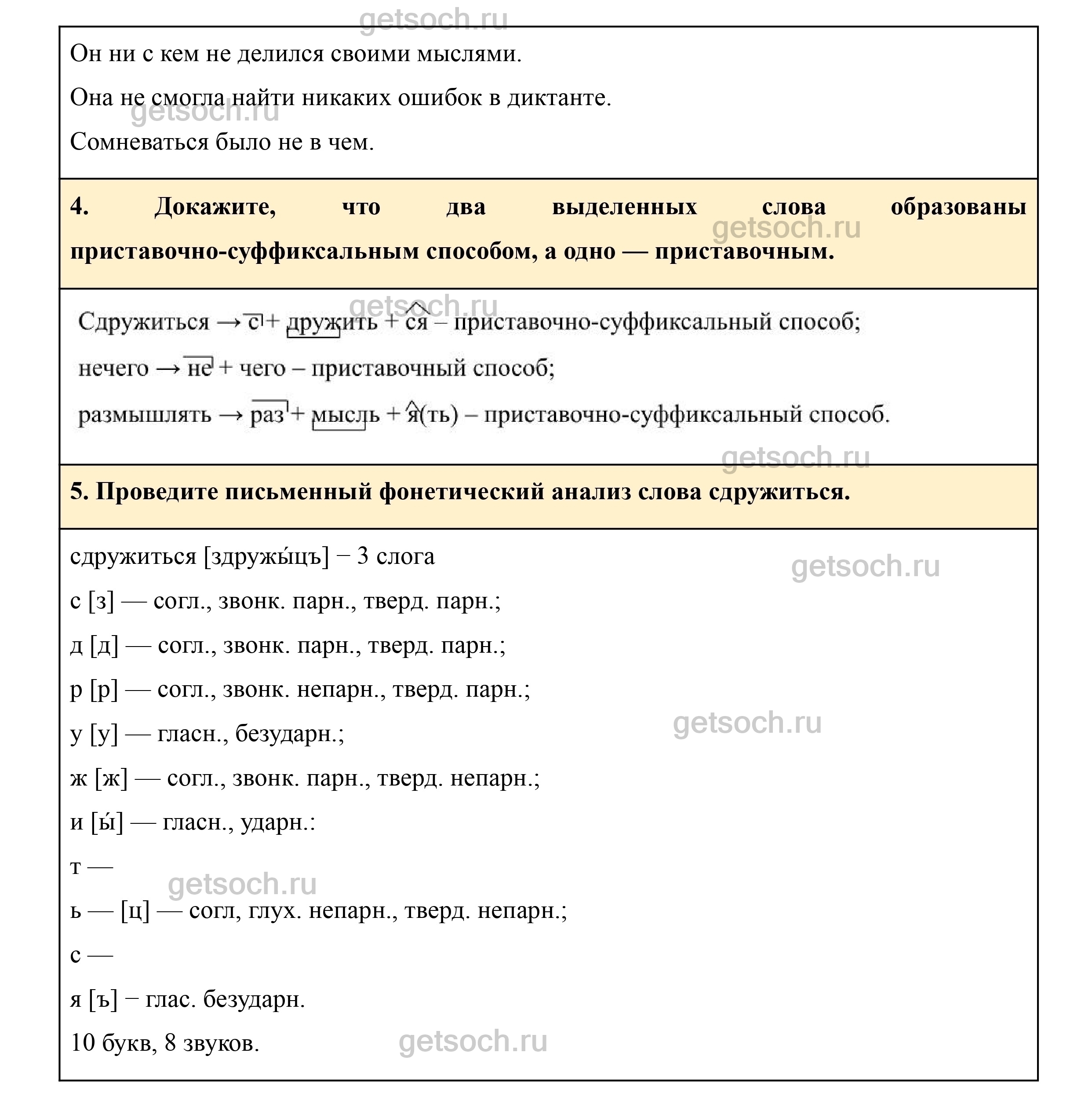 5. Проведите письменный фонетический анализ слова сдружиться.