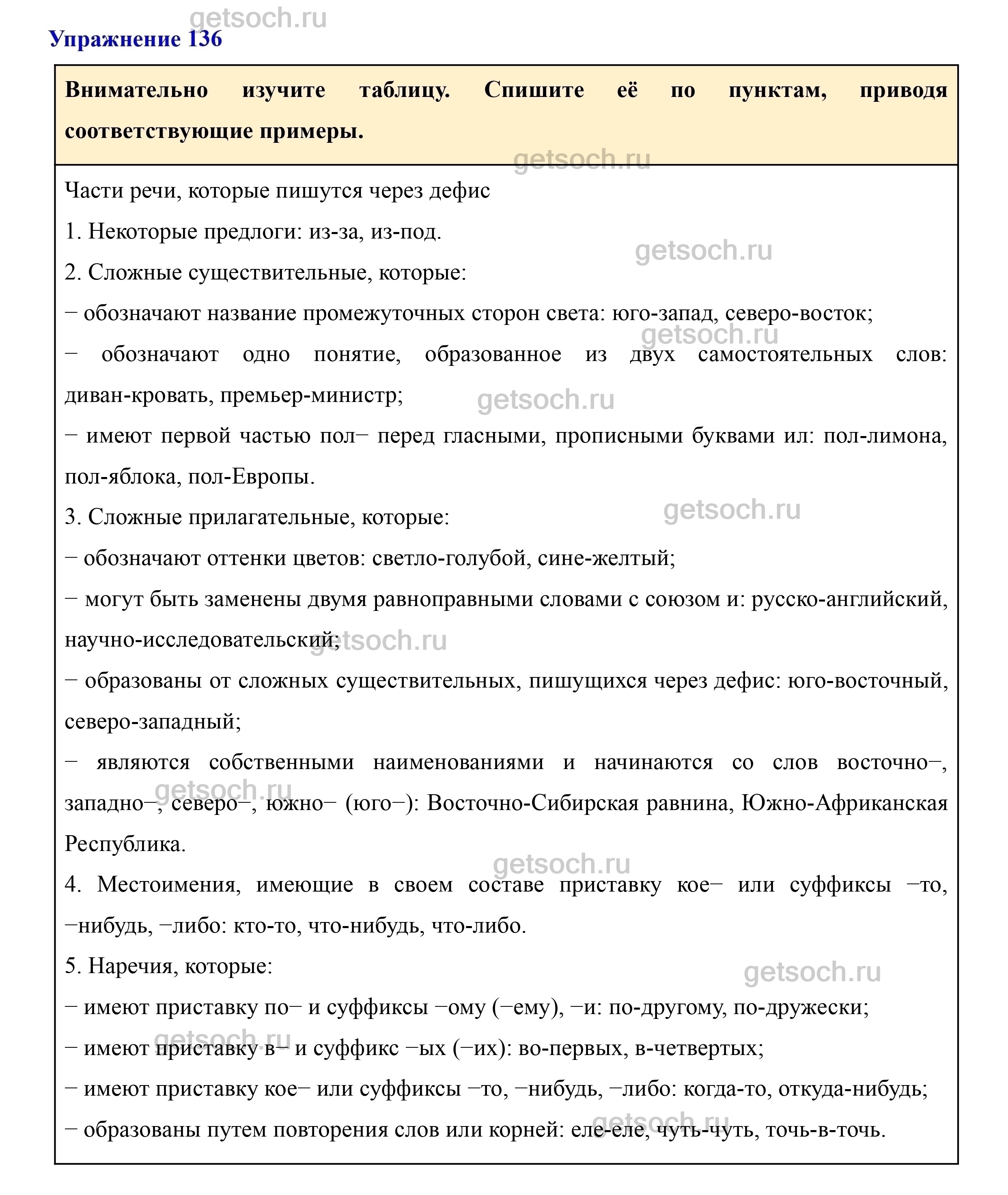 Рассмотрим ответы на Упражнение 136 из учебника по русскому языку для 7 класса Разумовской