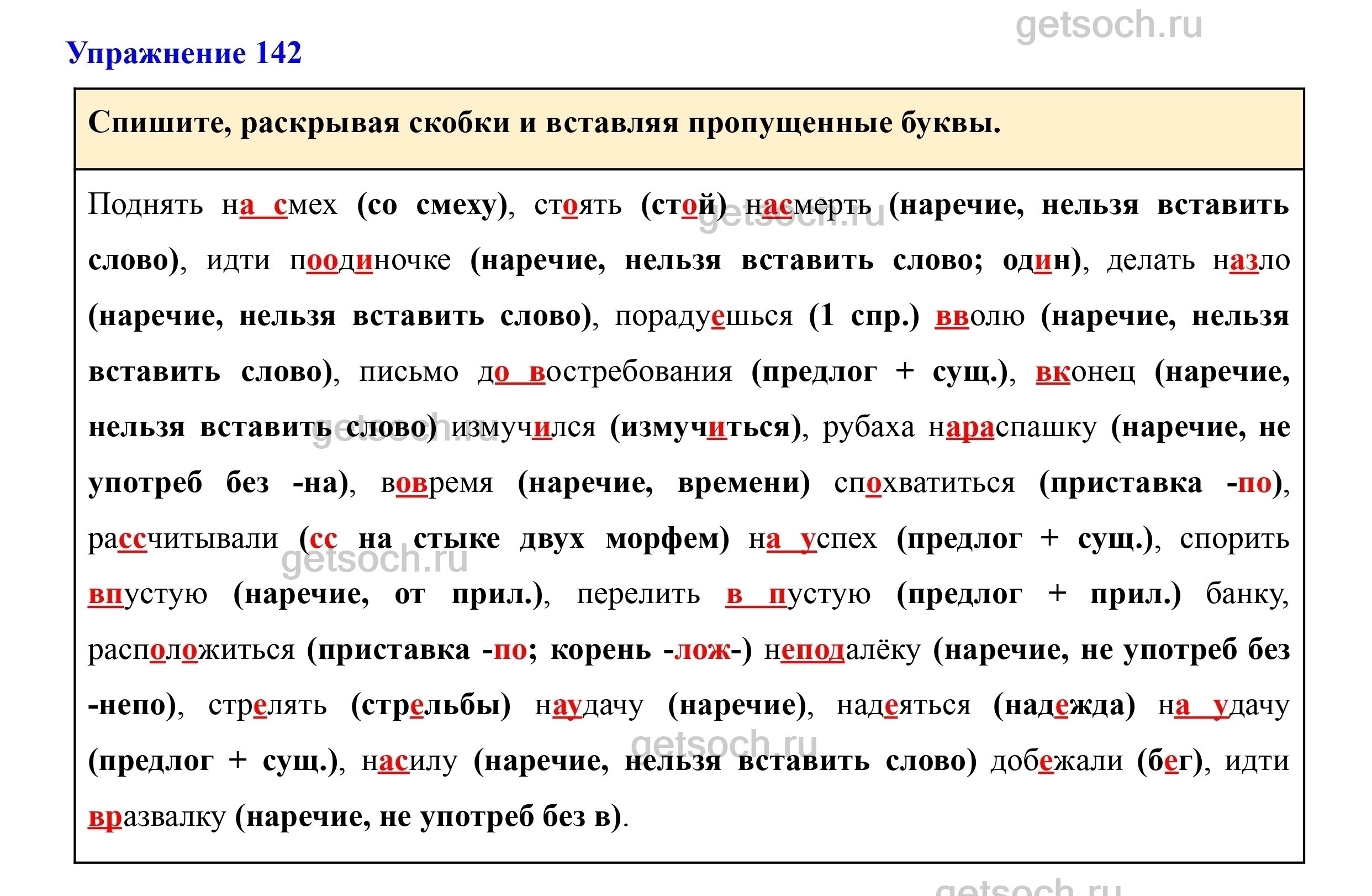 Рассмотрим ответы на Упражнение 142 из учебника по русскому языку для 7 класса Разумовской