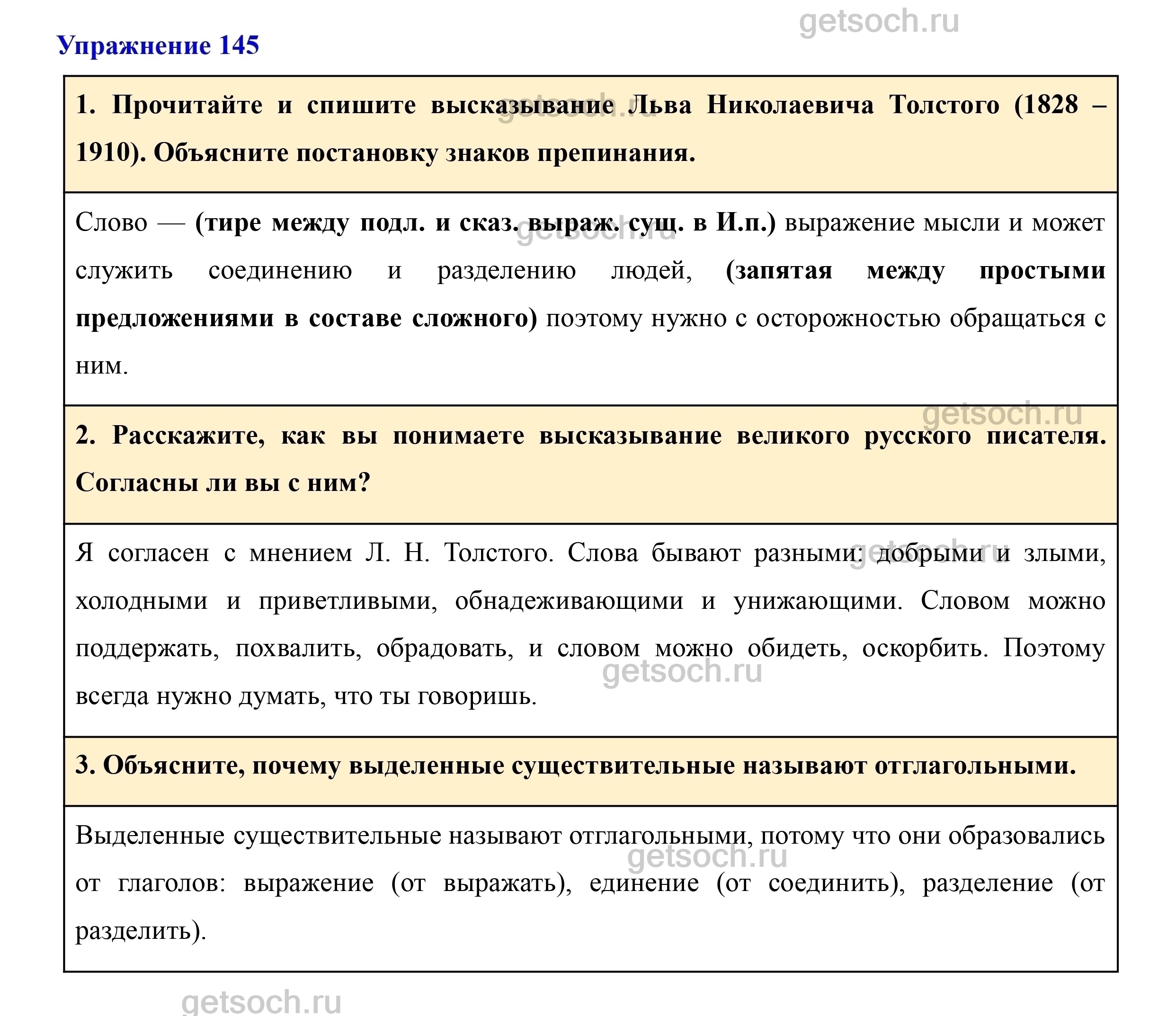 Рассмотрим ответы на Упражнение 145 из учебника по русскому языку для 7 класса Разумовской