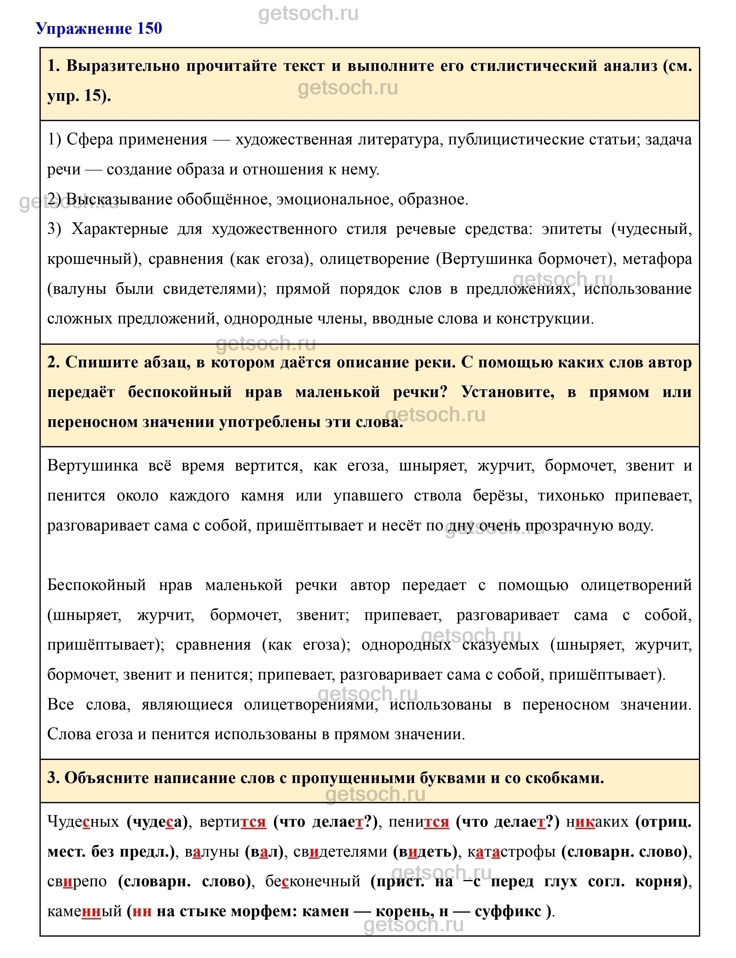 Рассмотрим ответы на Упражнение 150 из учебника по русскому языку для 7 класса Разумовской