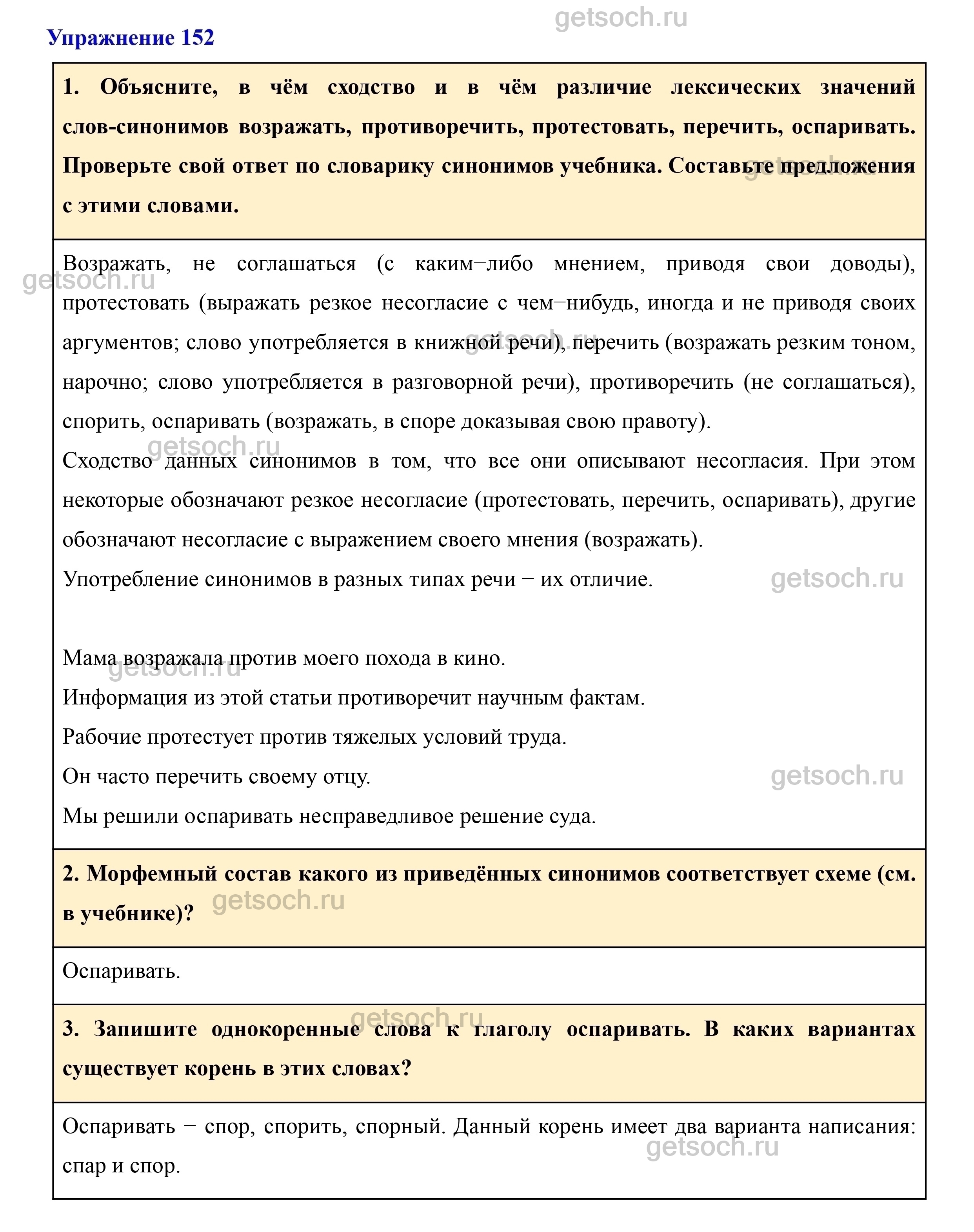 Рассмотрим ответы на Упражнение 152 из учебника по русскому языку для 7 класса Разумовской