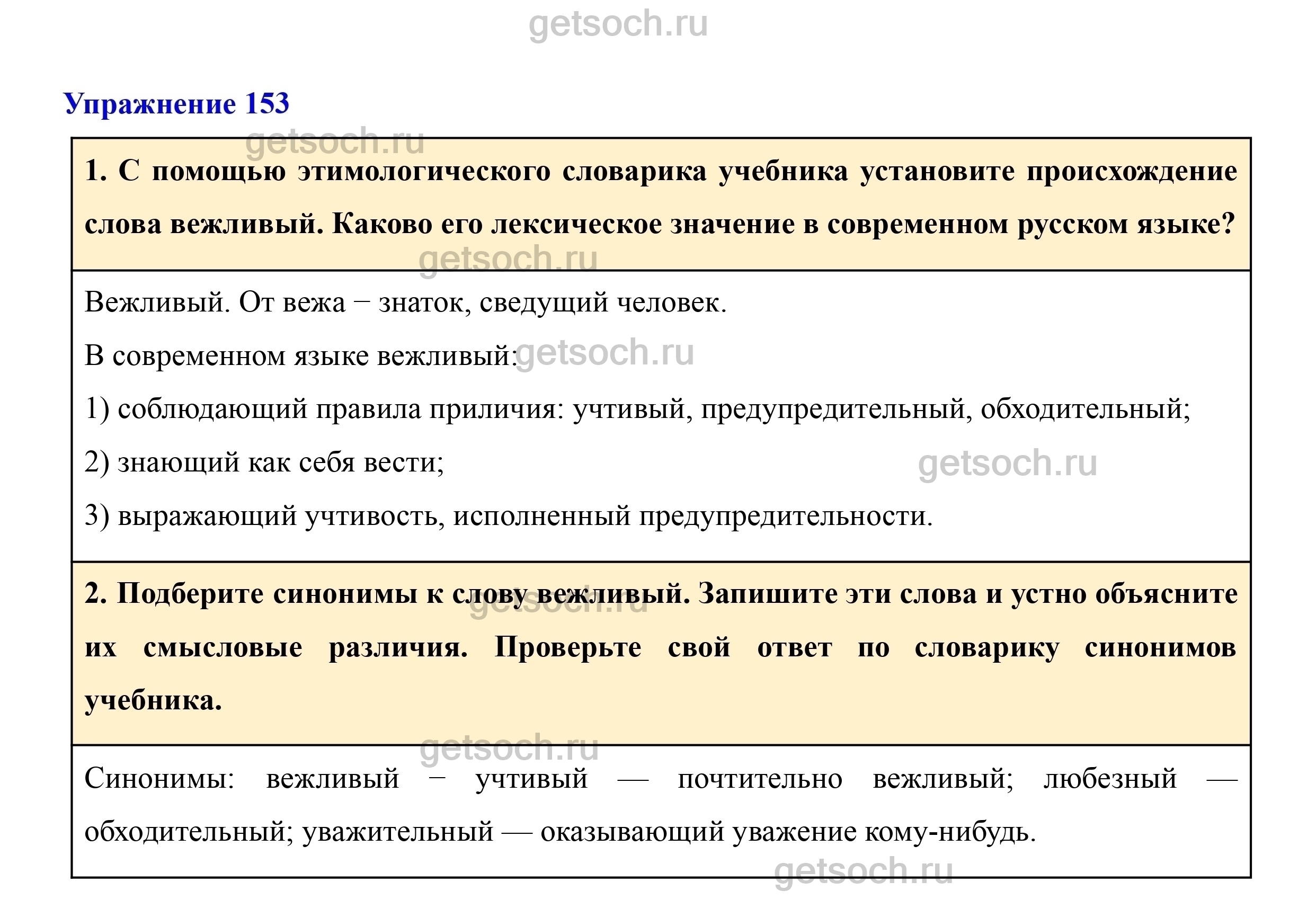 1. С помощью этимологического словарика учебника установите происхождение слова вежливый. Каково его лексическое значение в современном русском языке?