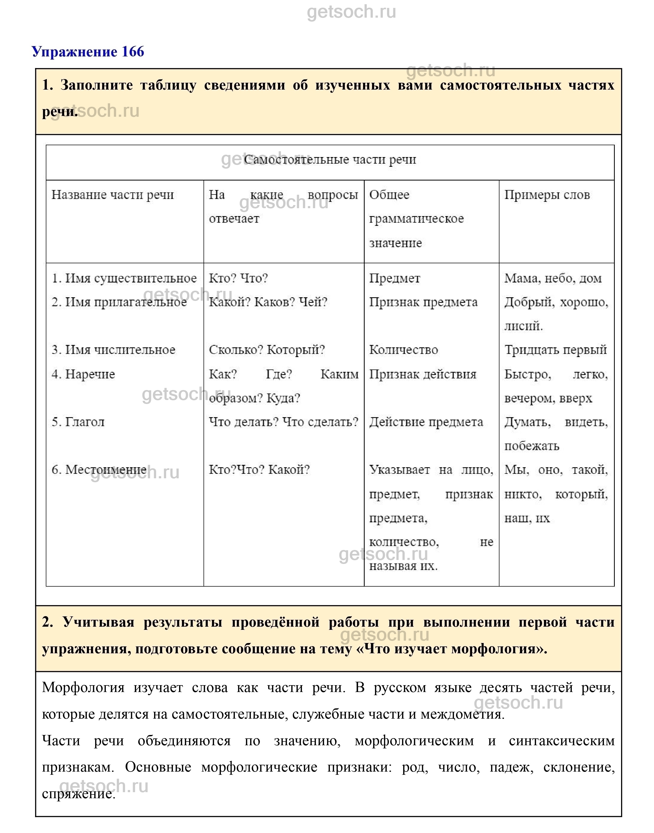 Рассмотрим ответы на Упражнение 166 из учебника по русскому языку для 7 класса Разумовской