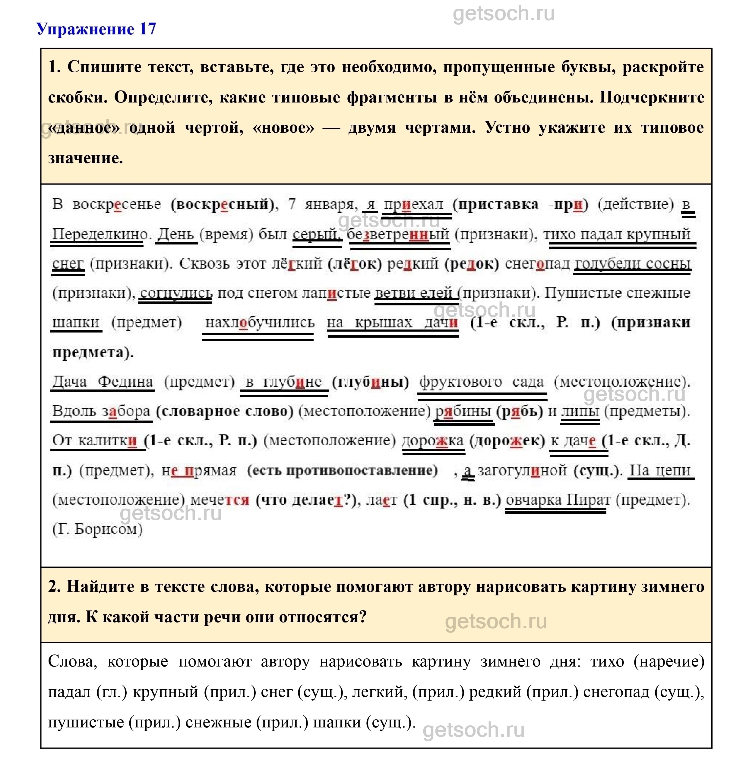 Рассмотрим ответы на Упражнение 17 из учебника по русскому языку для 7 класса Разумовской