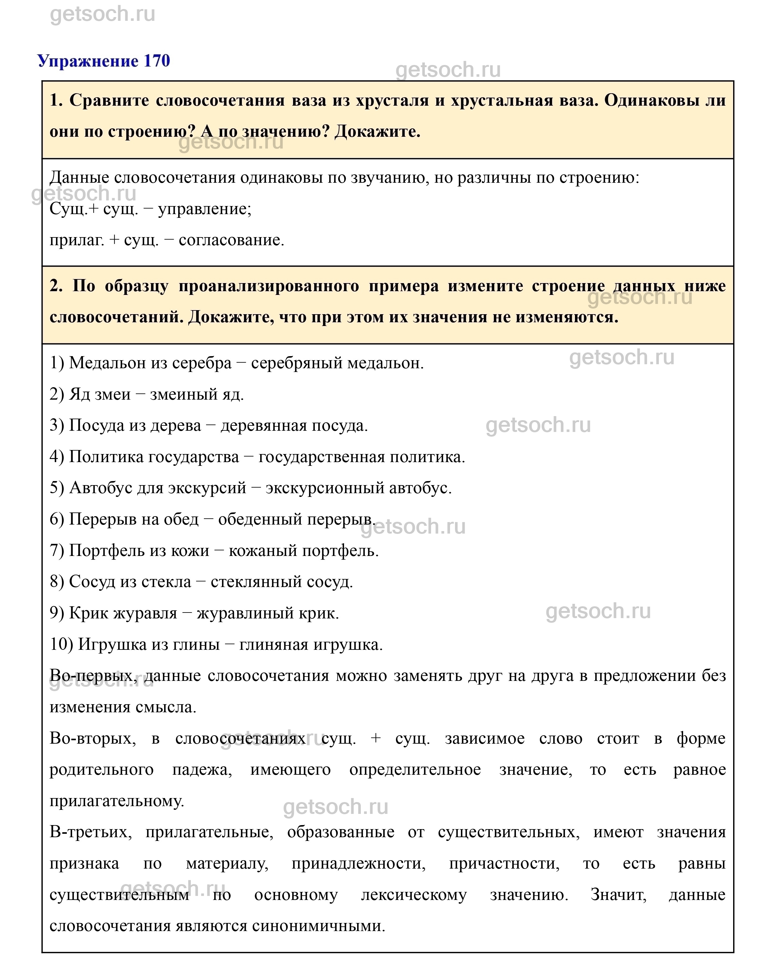 Рассмотрим ответы на Упражнение 170 из учебника по русскому языку для 7 класса Разумовской