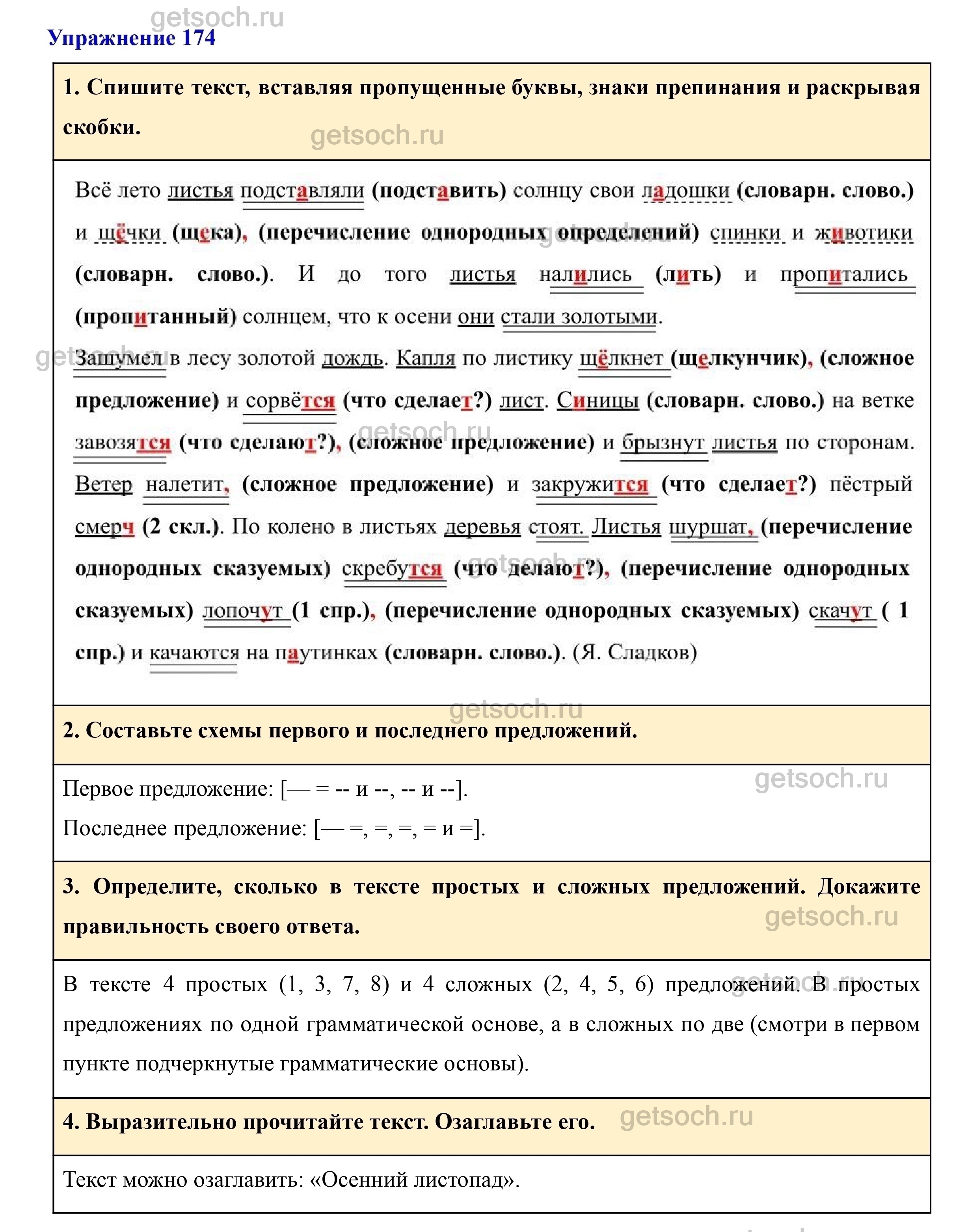 Рассмотрим ответы на Упражнение 174 из учебника по русскому языку для 7 класса Разумовской
