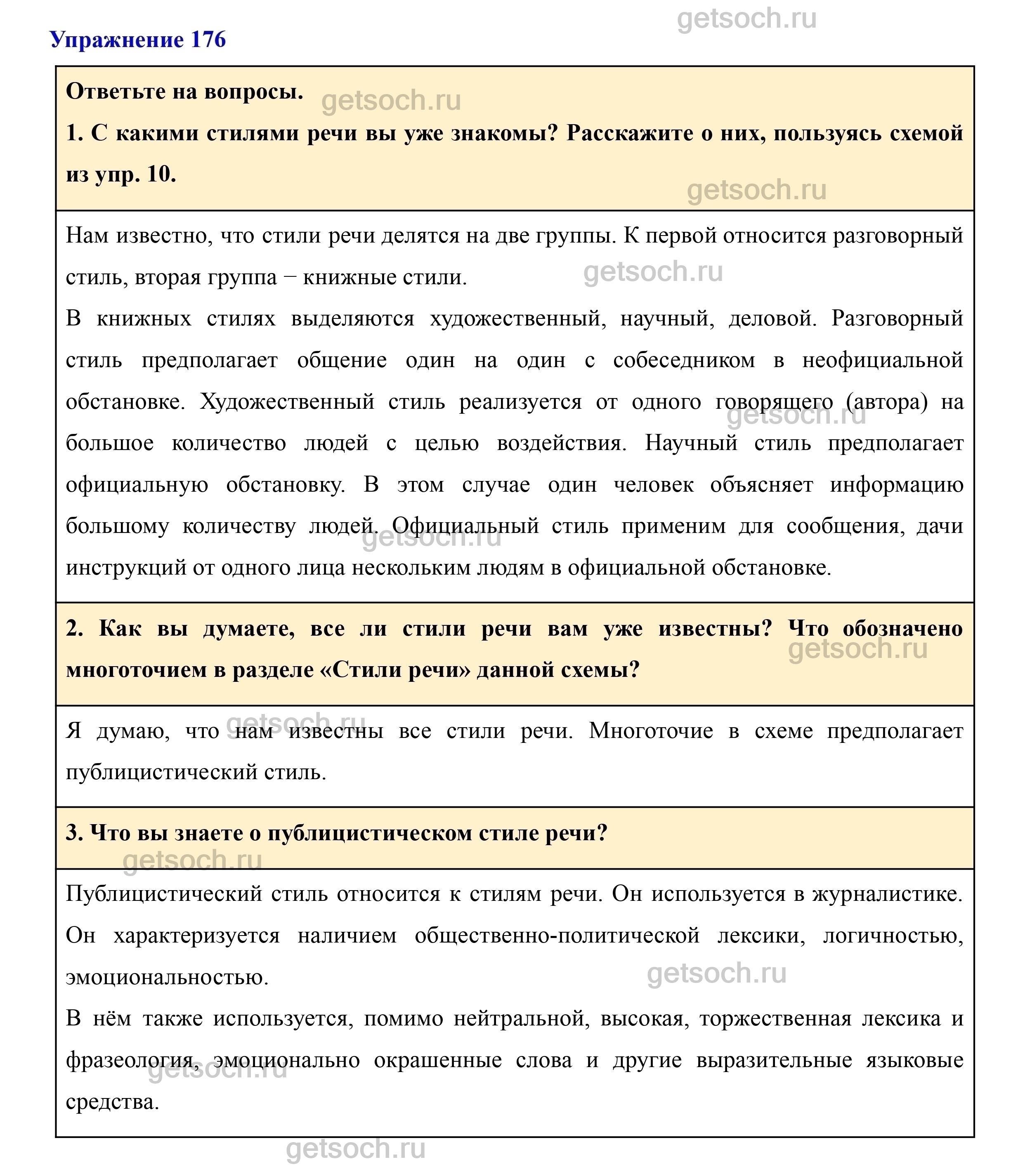 Рассмотрим ответы на Упражнение 176 из учебника по русскому языку для 7 класса Разумовской