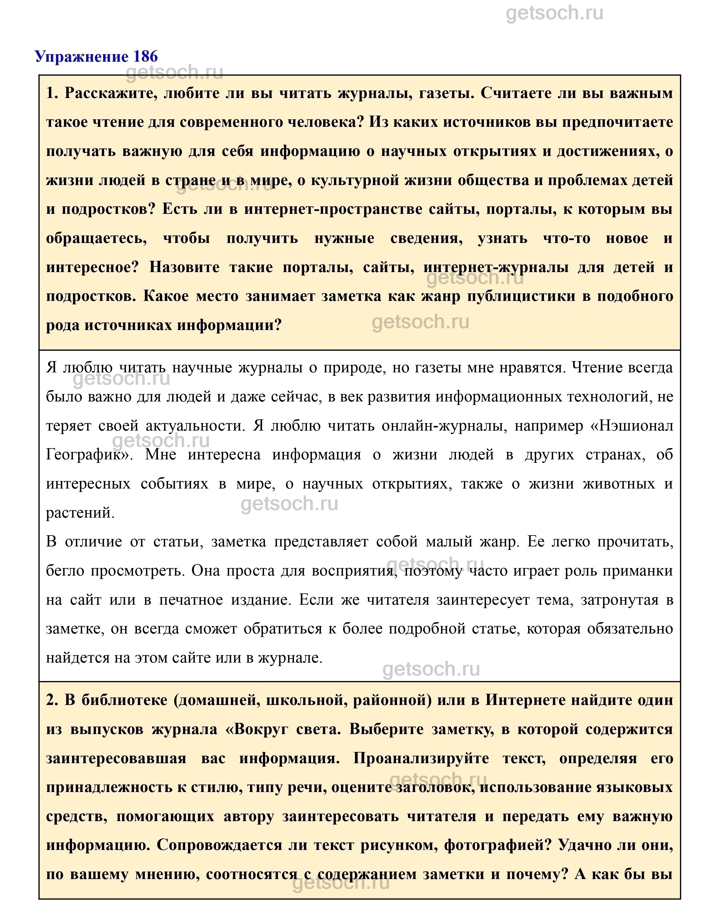 Рассмотрим ответы на Упражнение 186 из учебника по русскому языку для 7 класса Разумовской
