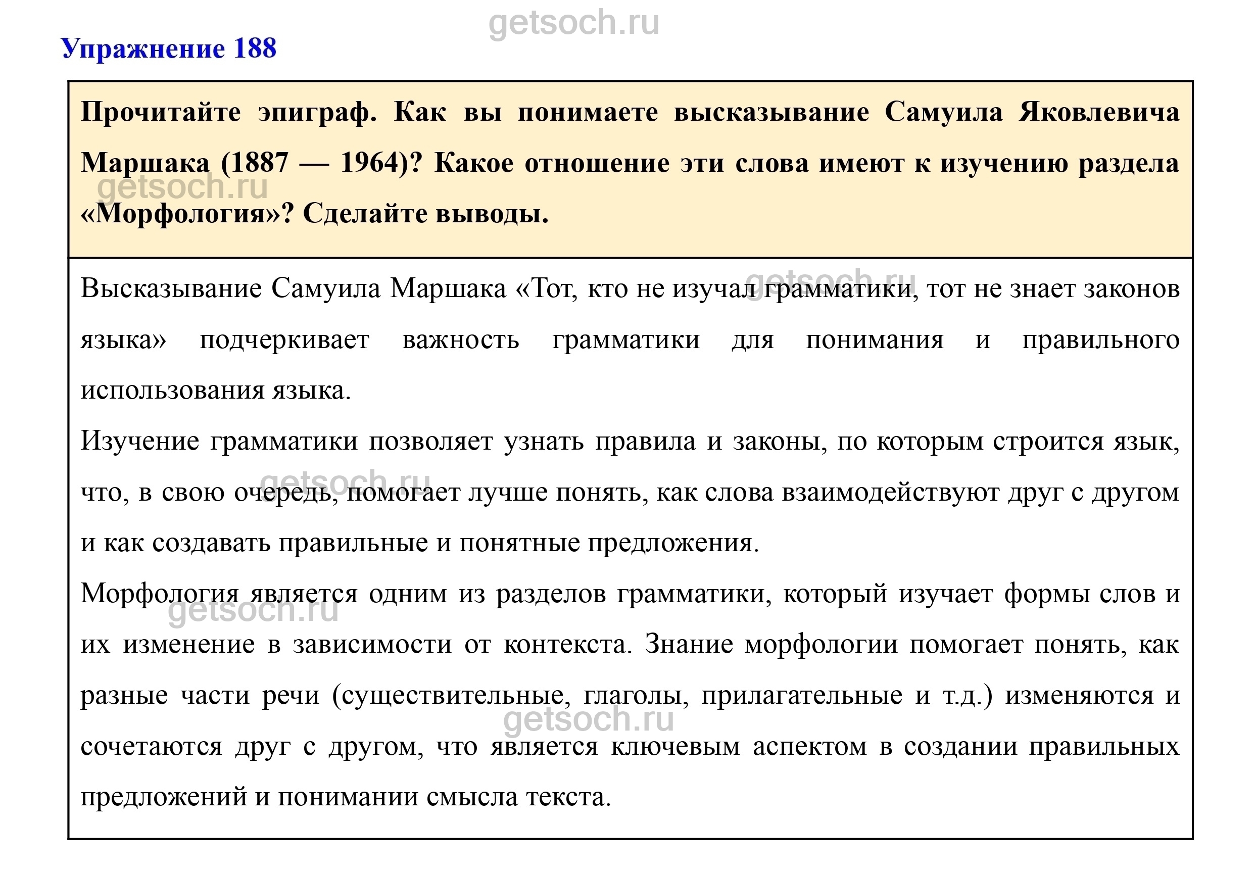 Прочитайте эпиграф. Как вы понимаете высказывание Самуила Яковлевича Маршака (1887 — 1964)? Какое отношение эти слова имеют к изучению раздела «Морфология»? Сделайте выводы.