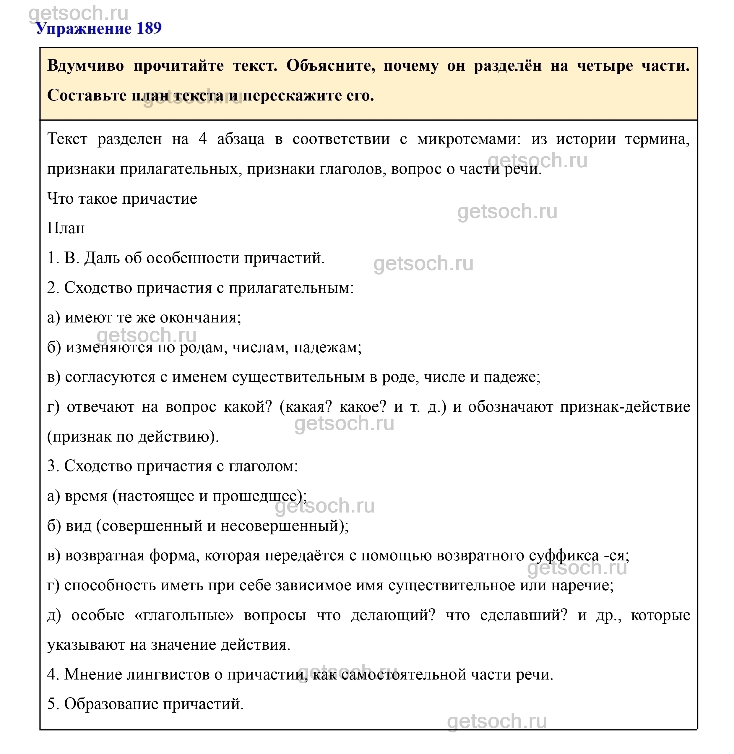 Рассмотрим ответы на Упражнение 189 из учебника по русскому языку для 7 класса Разумовской