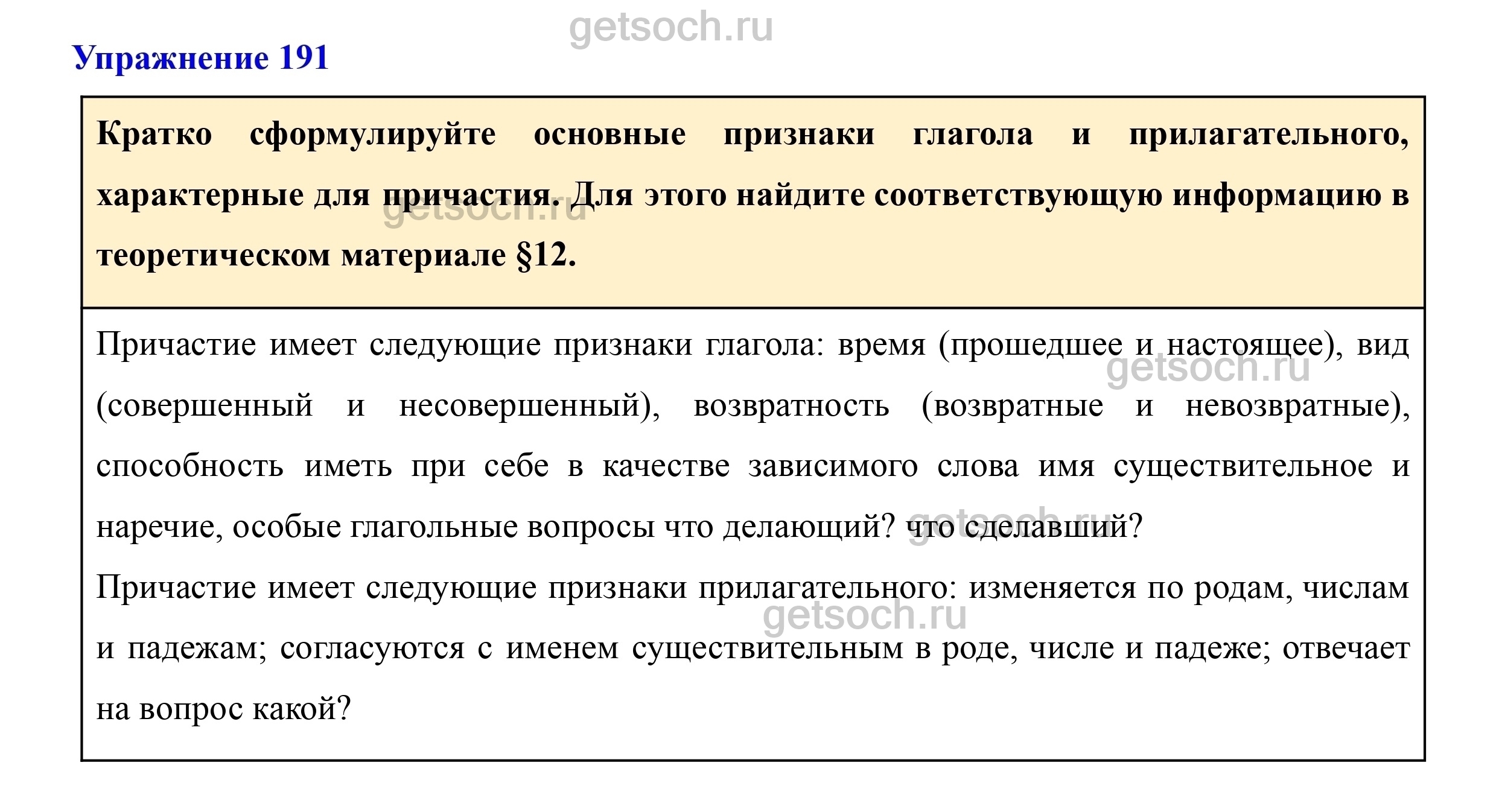Кратко сформулируйте основные признаки глагола и прилагательного, характерные для причастия. Для этого найдите соответствующую информацию в теоретическом материале §12.