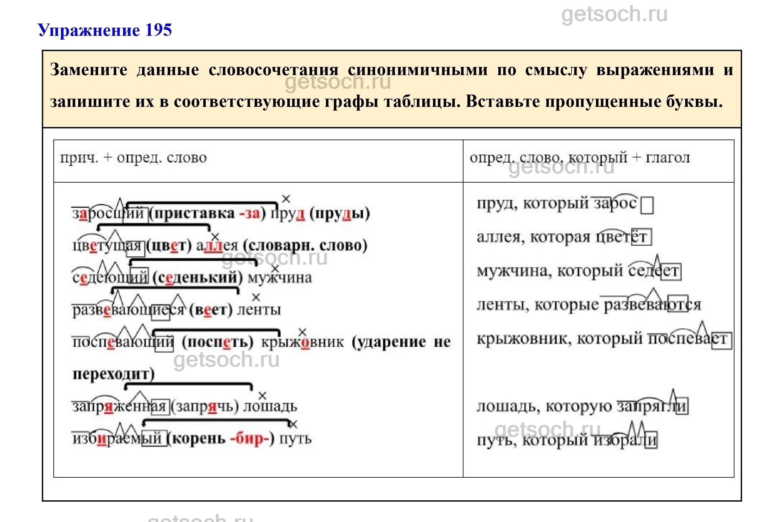 Рассмотрим ответы на Упражнение 195 из учебника по русскому языку для 7 класса Разумовской
