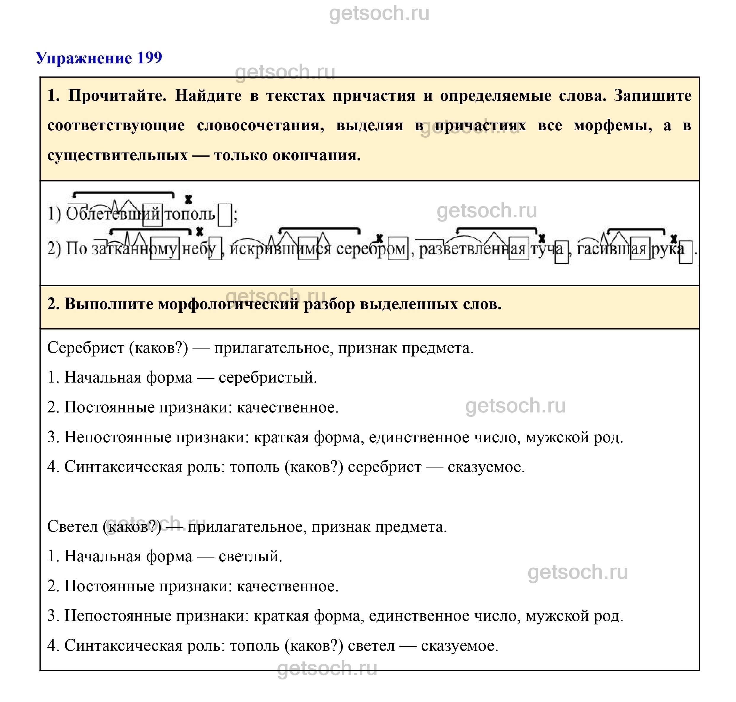 Рассмотрим ответы на Упражнение 199 из учебника по русскому языку для 7 класса Разумовской
