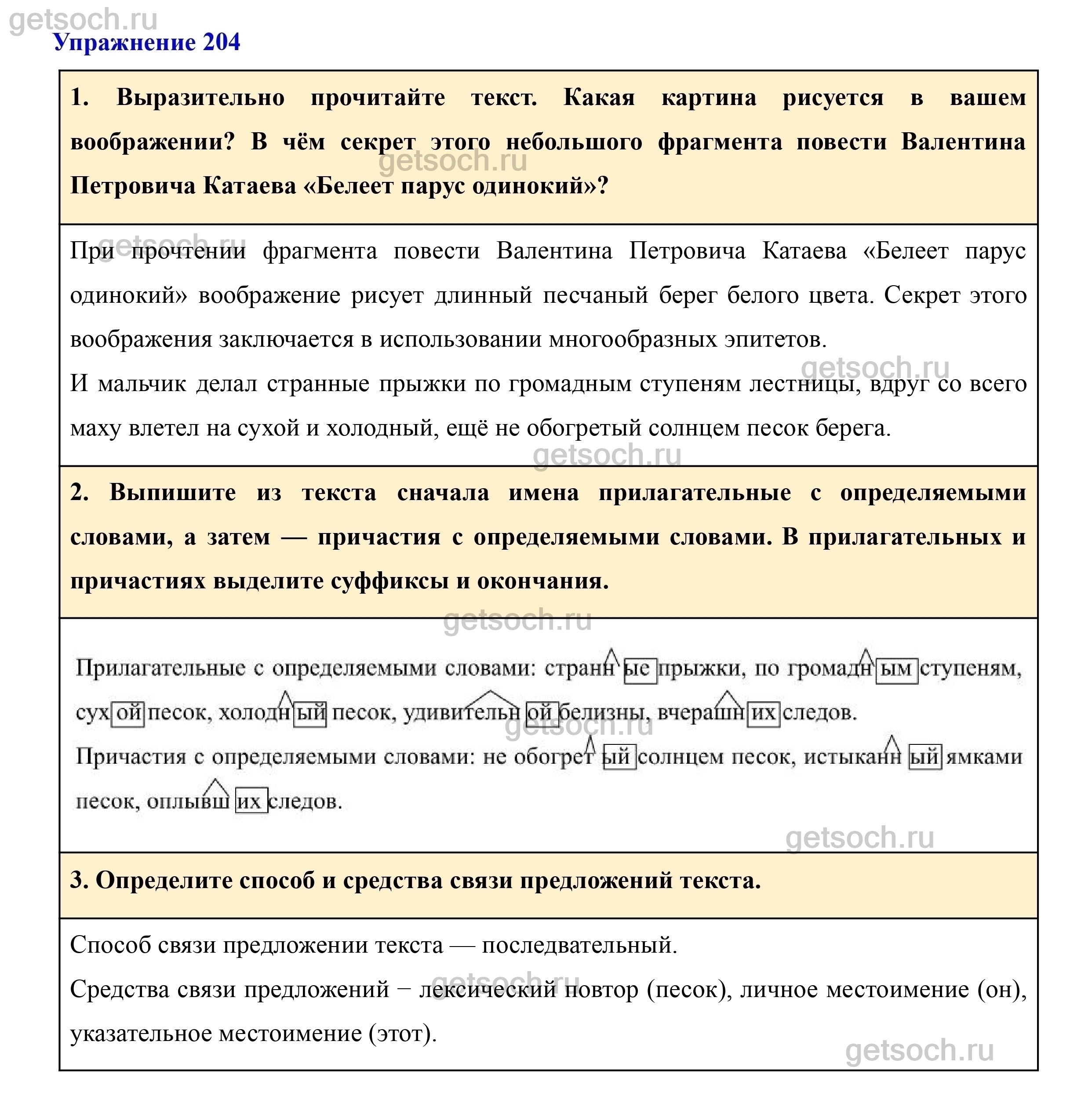 Рассмотрим ответы на Упражнение 204 из учебника по русскому языку для 7 класса Разумовской
