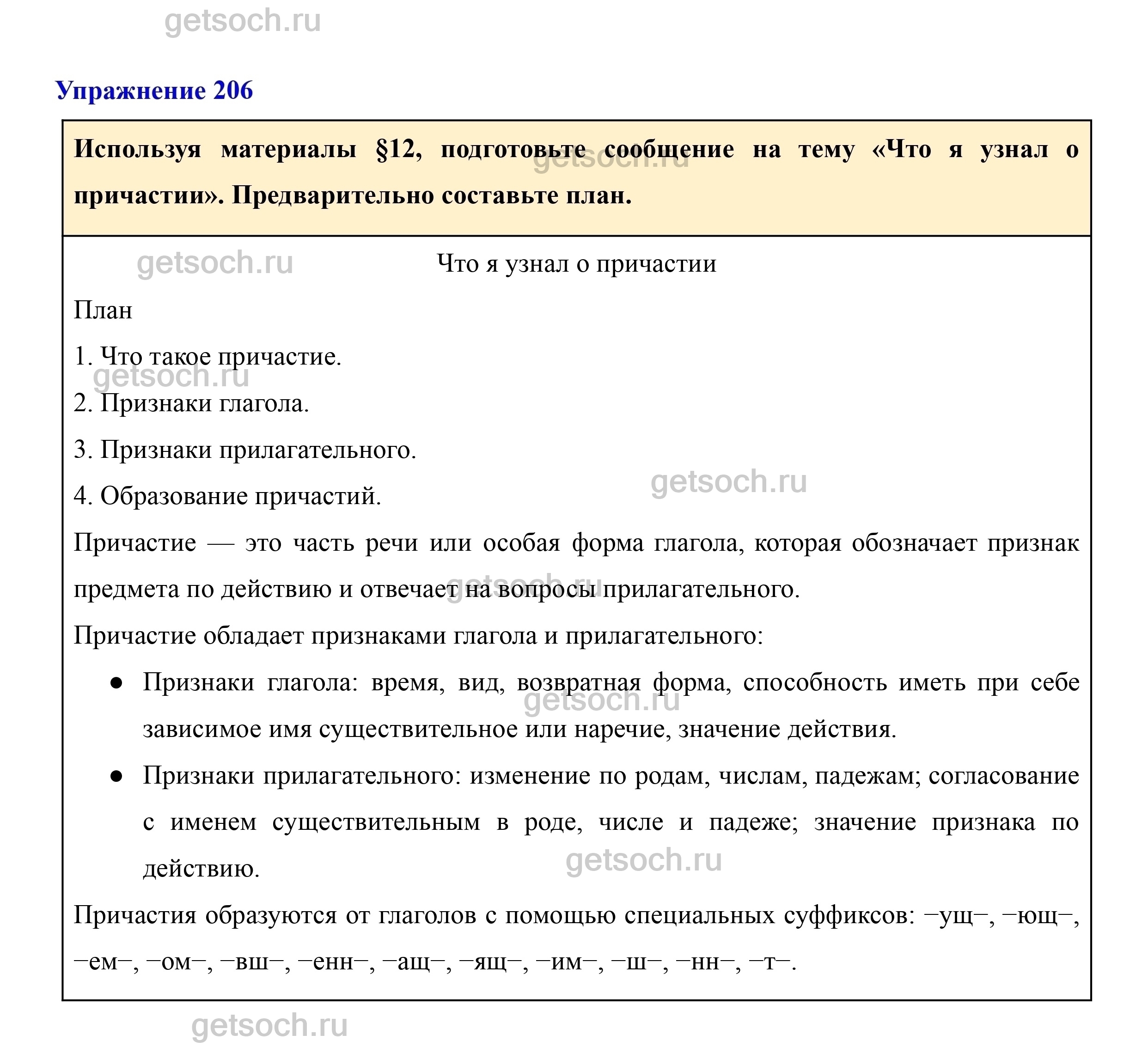 Рассмотрим ответы на Упражнение 206 из учебника по русскому языку для 7 класса Разумовской