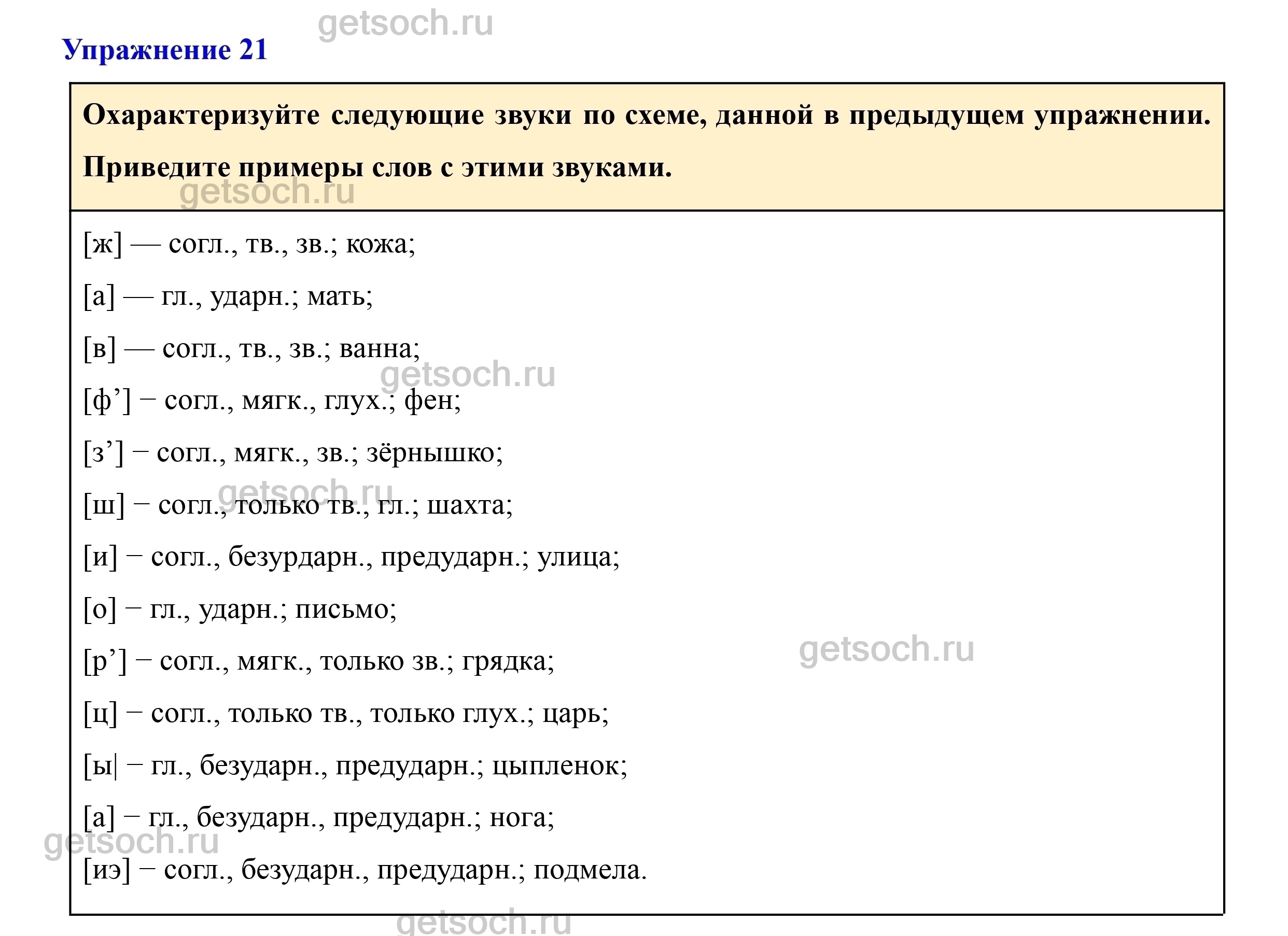Охарактеризуйте следующие звуки по схеме, данной в предыдущем упражнении. Приведите примеры слов с этими звуками.
