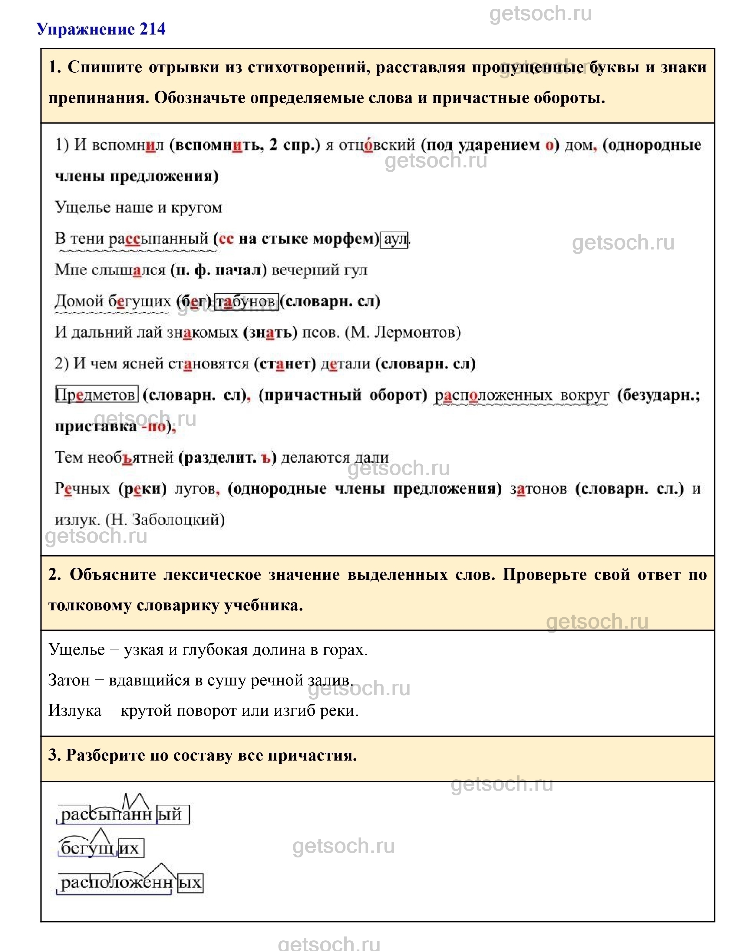 Рассмотрим ответы на Упражнение 214 из учебника по русскому языку для 7 класса Разумовской