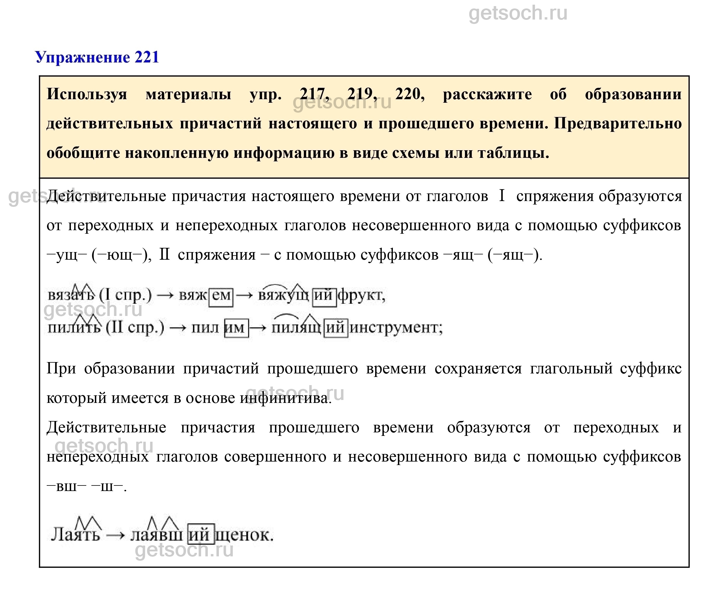Используя материалы упр. 217, 219, 220, расскажите об образовании действительных причастий настоящего и прошедшего времени. Предварительно обобщите накопленную информацию в виде схемы или таблицы.