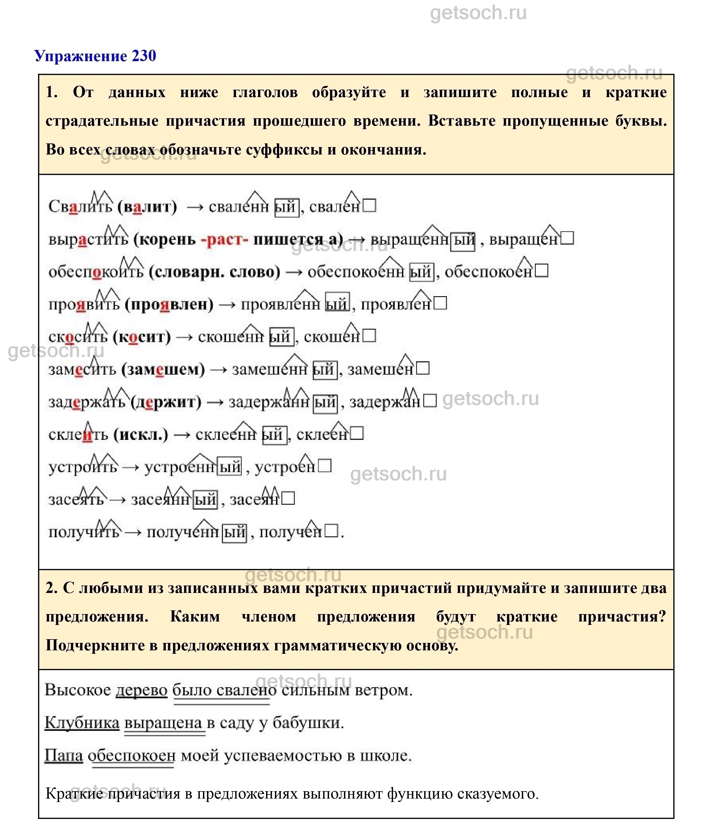 Рассмотрим ответы на Упражнение 230 из учебника по русскому языку для 7 класса Разумовской