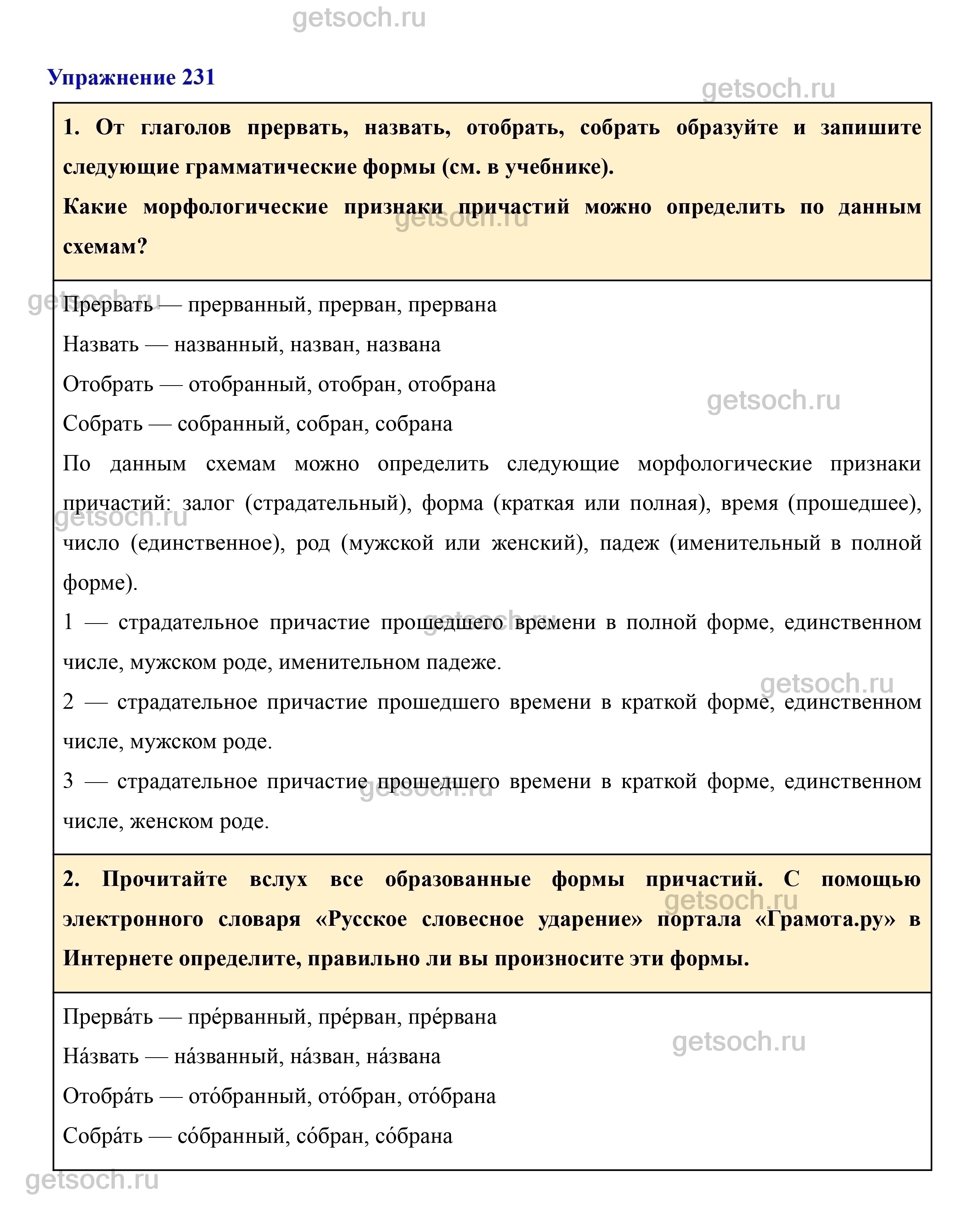 1. От глаголов прервать, назвать, отобрать, собрать образуйте и запишите следующие грамматические формы (см. в учебнике).