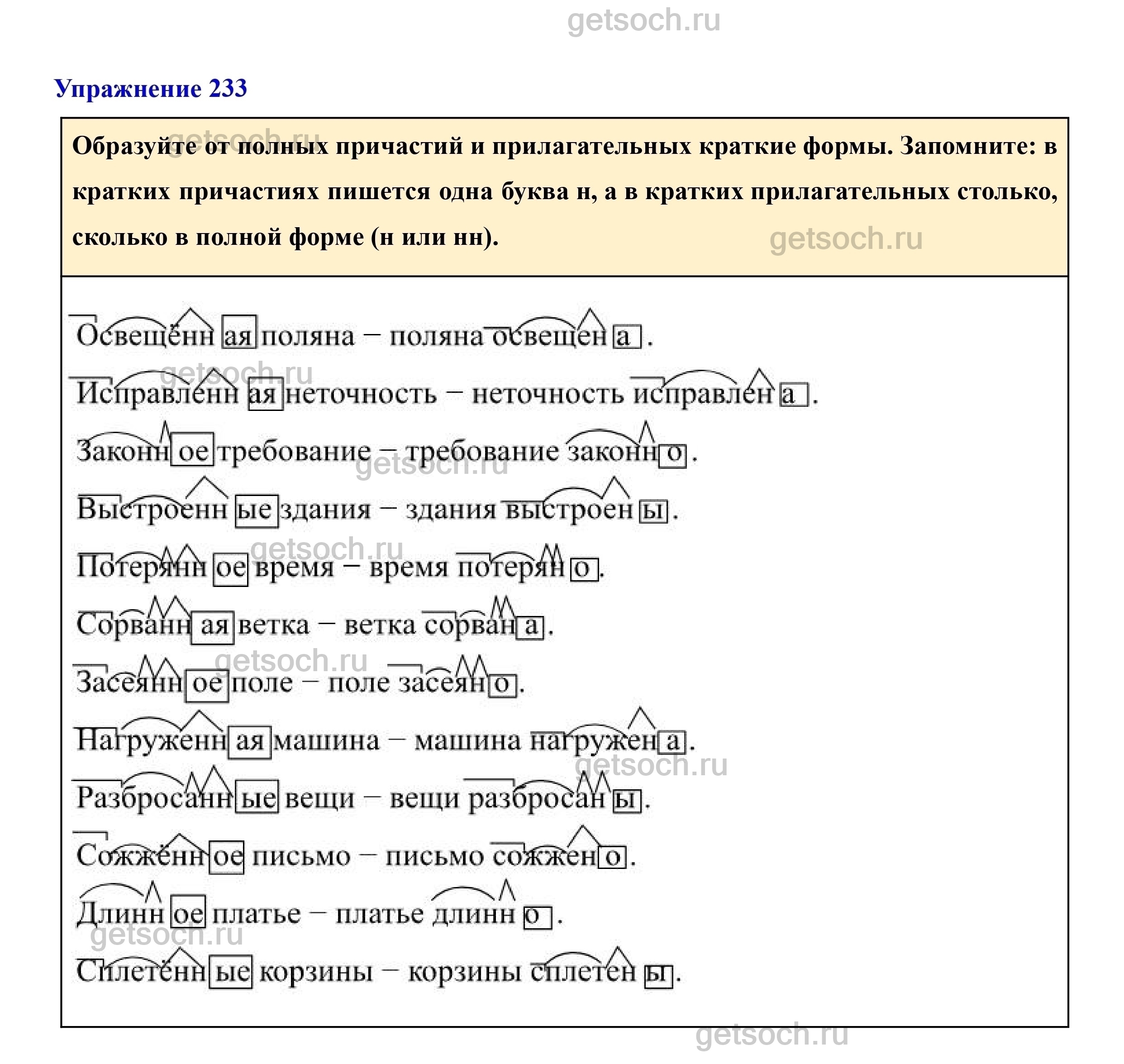 Рассмотрим ответы на Упражнение 233 из учебника по русскому языку для 7 класса Разумовской