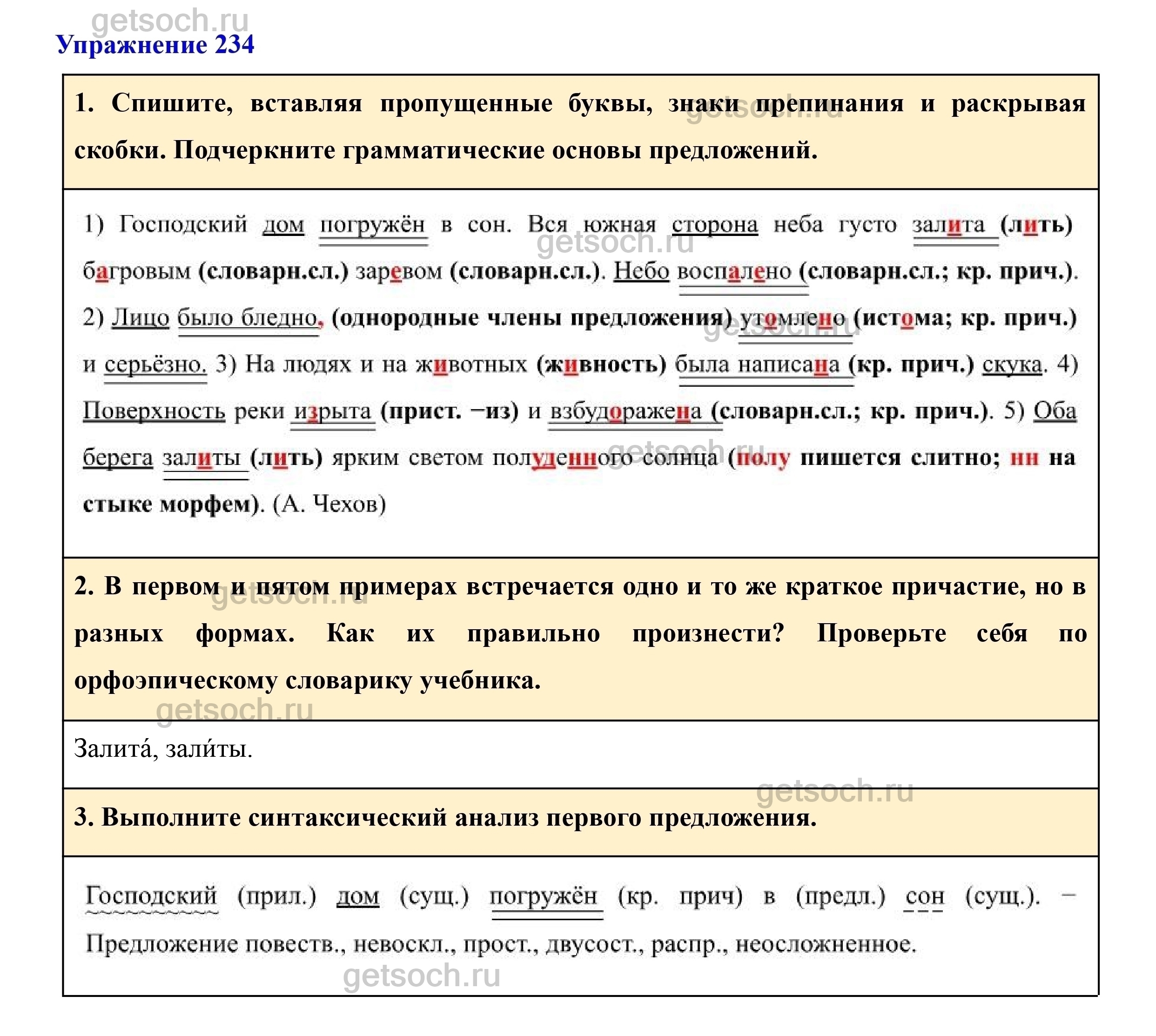 Рассмотрим ответы на Упражнение 234 из учебника по русскому языку для 7 класса Разумовской