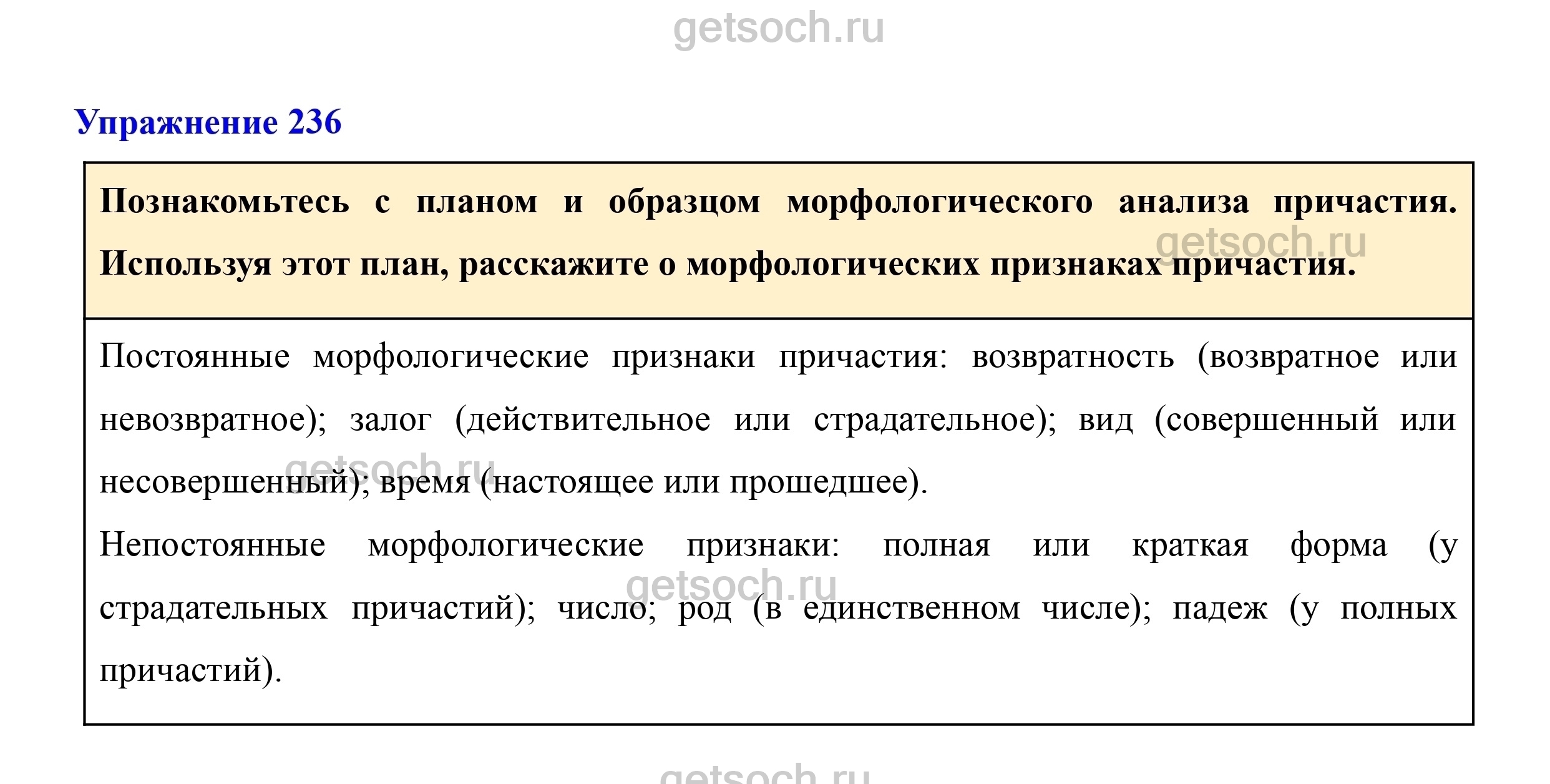 Рассмотрим ответы на Упражнение 236 из учебника по русскому языку для 7 класса Разумовской