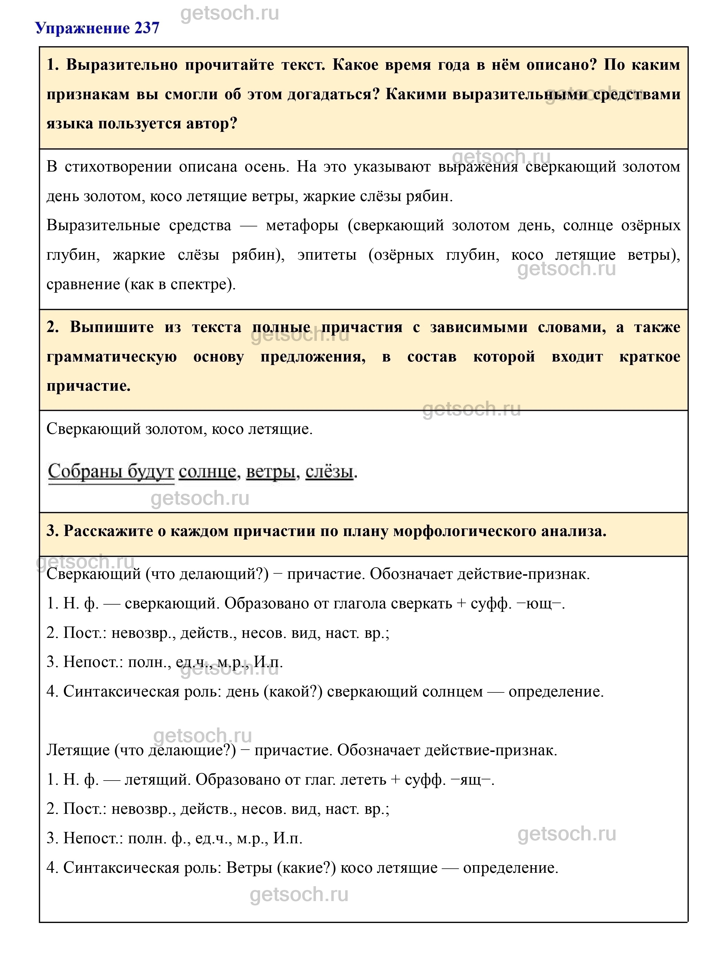 Рассмотрим ответы на Упражнение 237 из учебника по русскому языку для 7 класса Разумовской