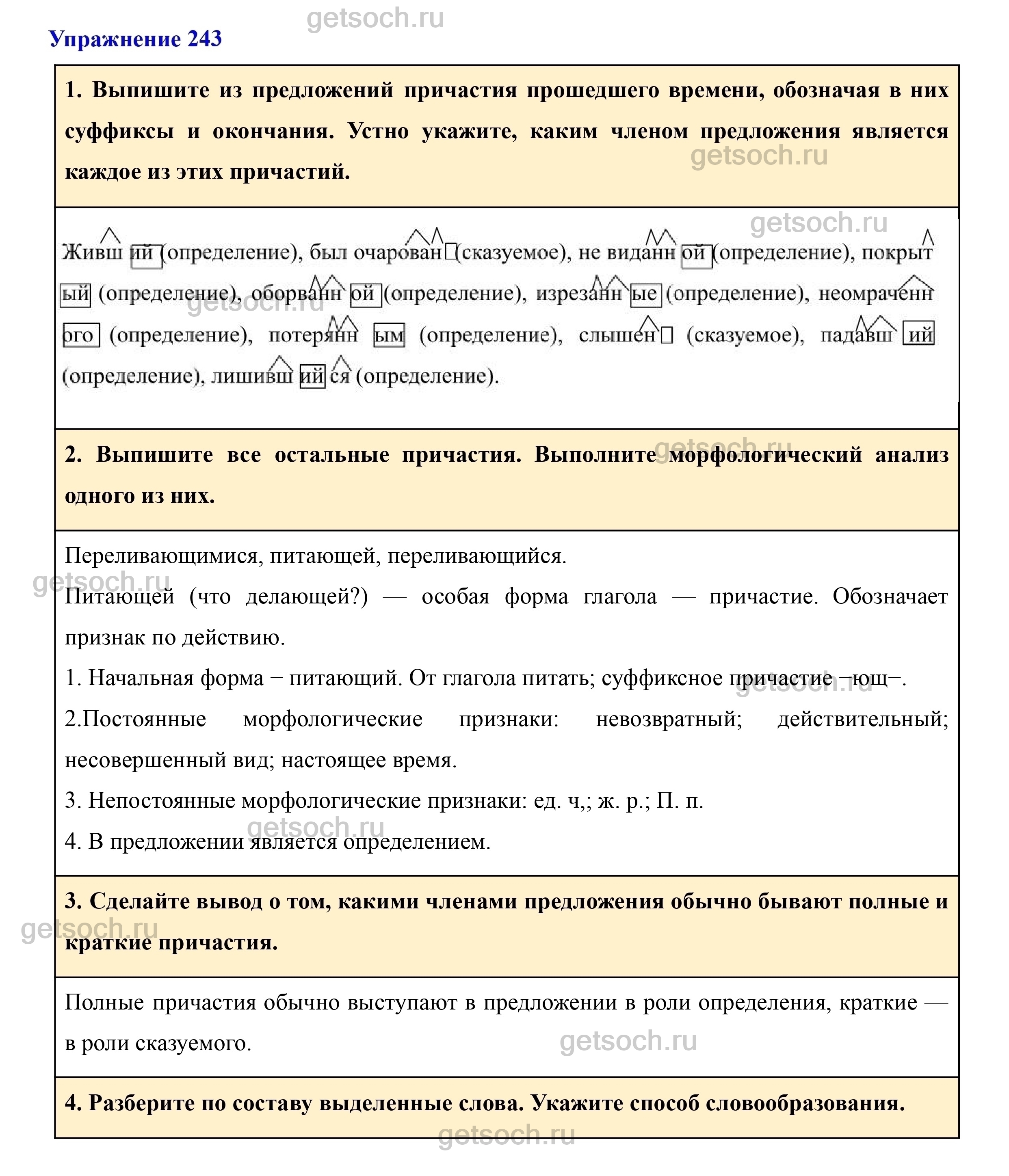 Рассмотрим ответы на Упражнение 243 из учебника по русскому языку для 7 класса Разумовской