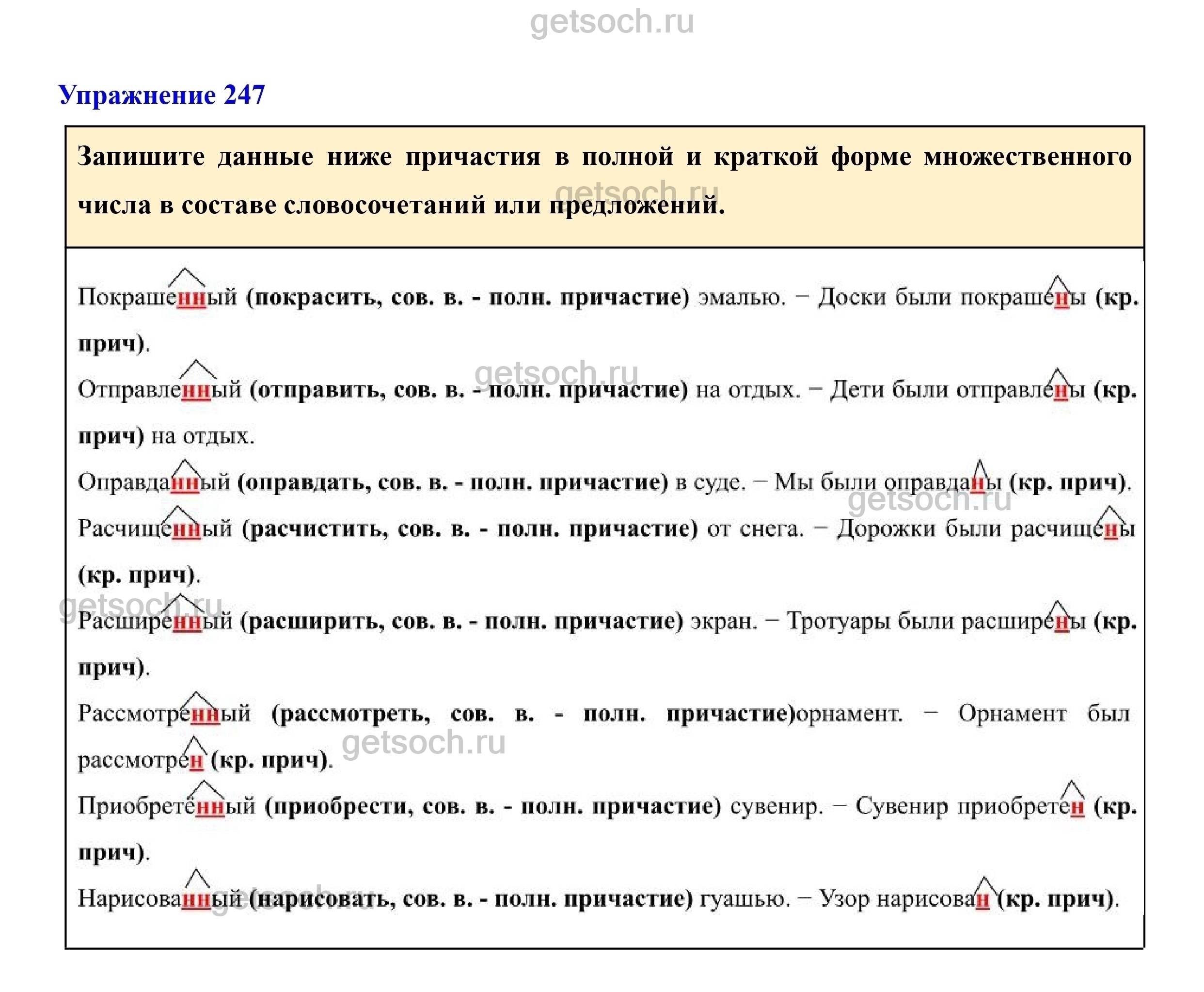 Рассмотрим ответы на Упражнение 247 из учебника по русскому языку для 7 класса Разумовской