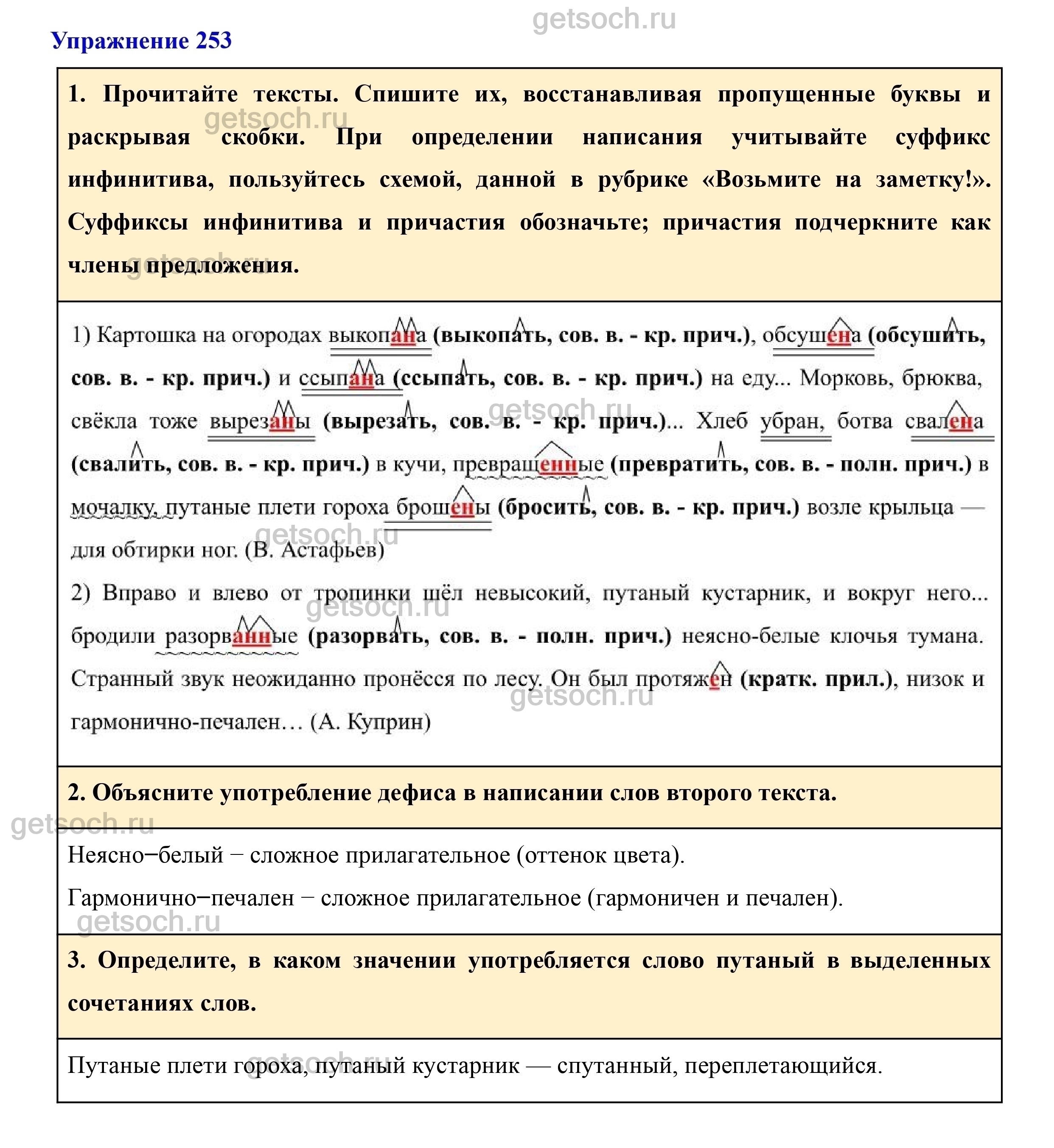 Рассмотрим ответы на Упражнение 253 из учебника по русскому языку для 7 класса Разумовской