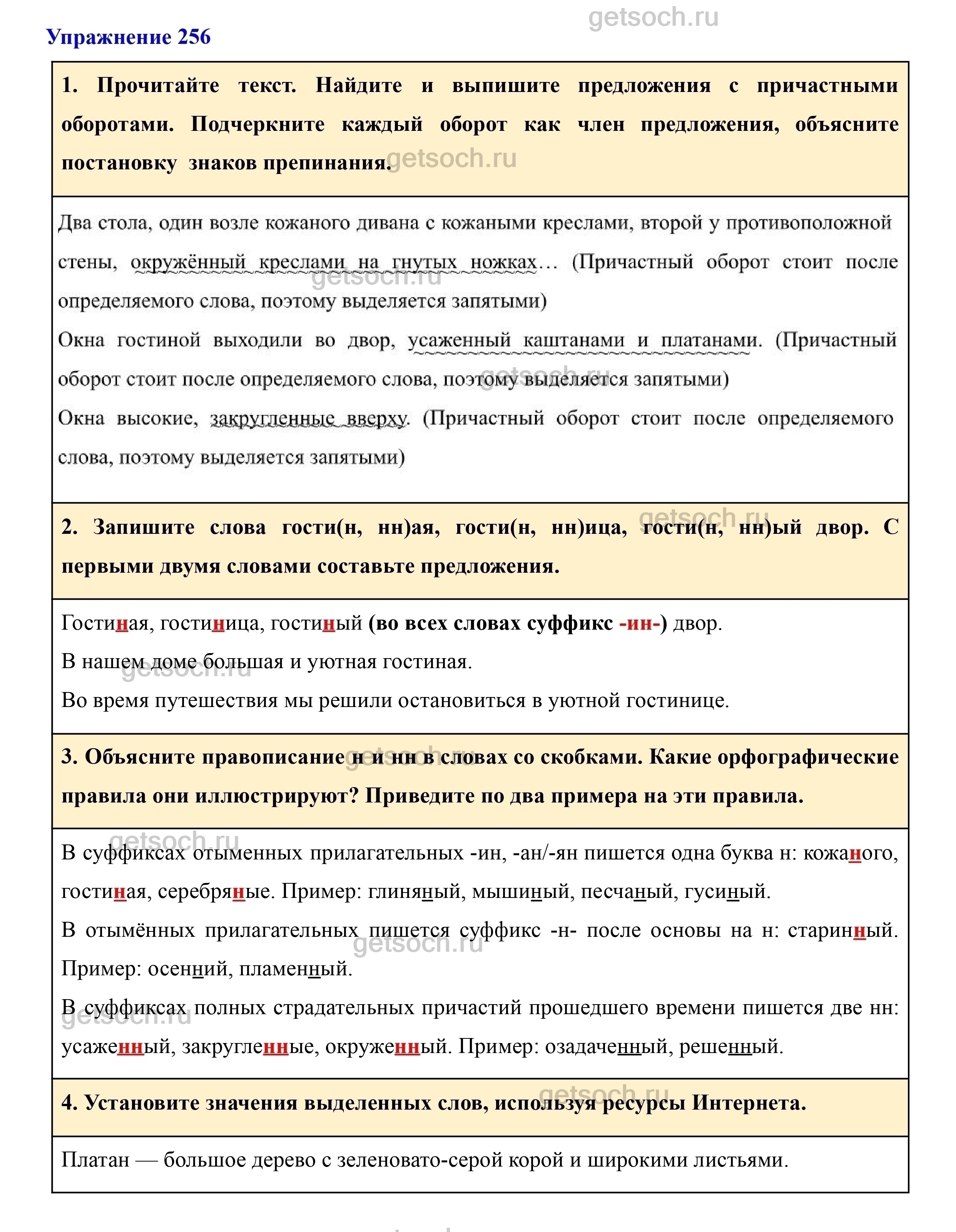 Рассмотрим ответы на Упражнение 256 из учебника по русскому языку для 7 класса Разумовской