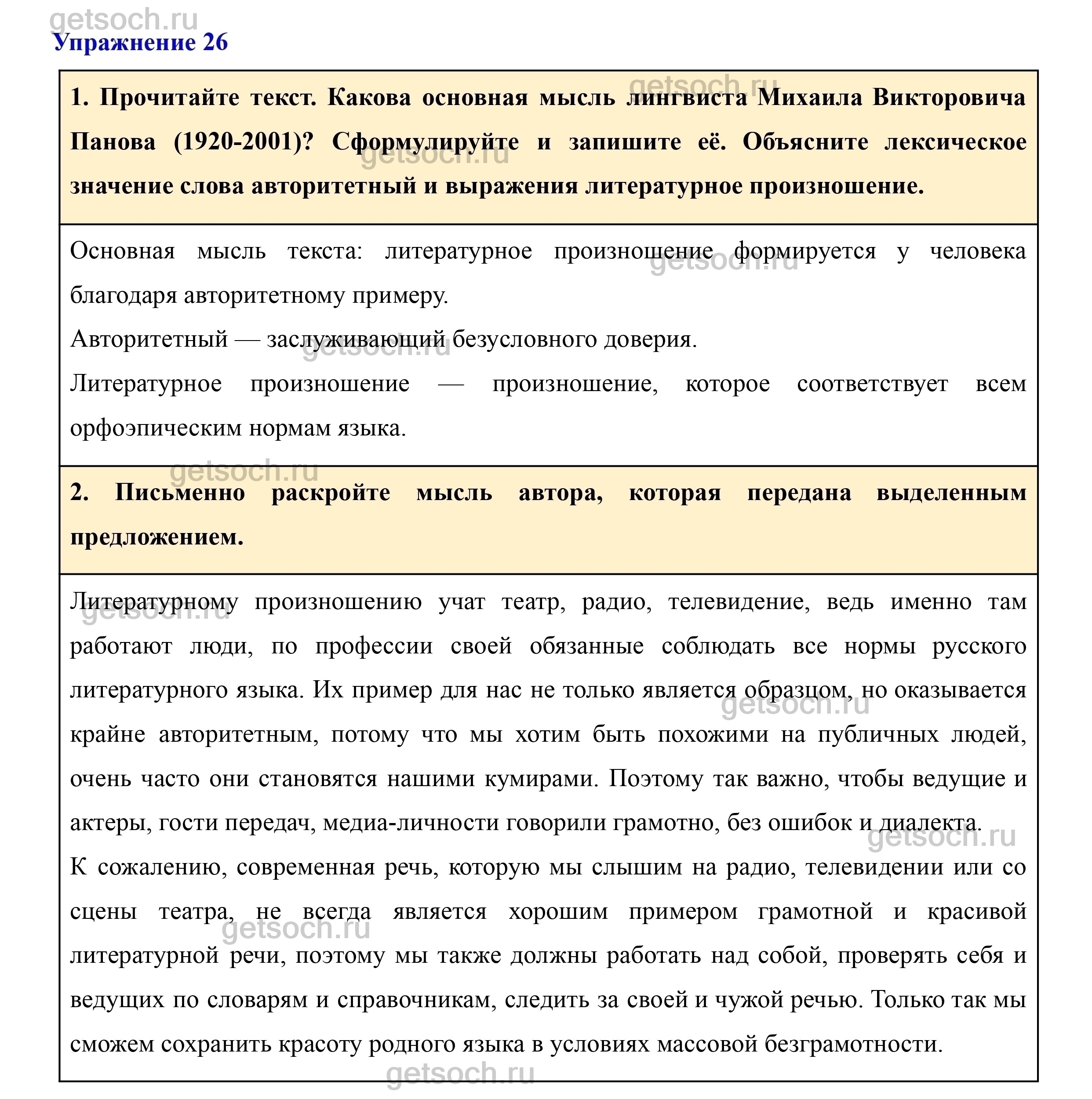 Рассмотрим ответы на Упражнение 26 из учебника по русскому языку для 7 класса Разумовской