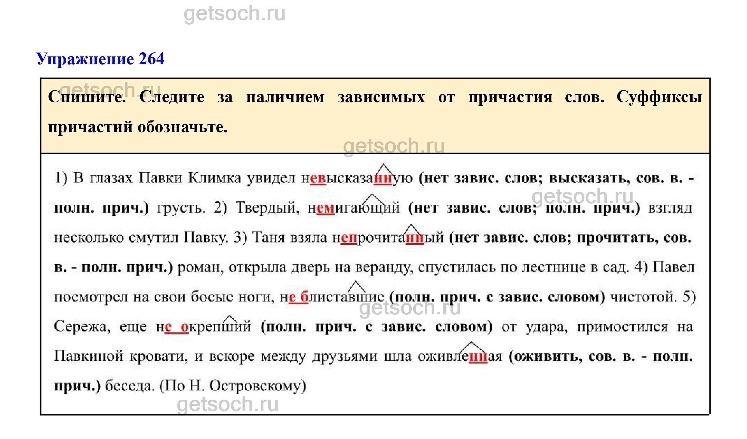 Рассмотрим ответы на Упражнение 264 из учебника по русскому языку для 7 класса Разумовской