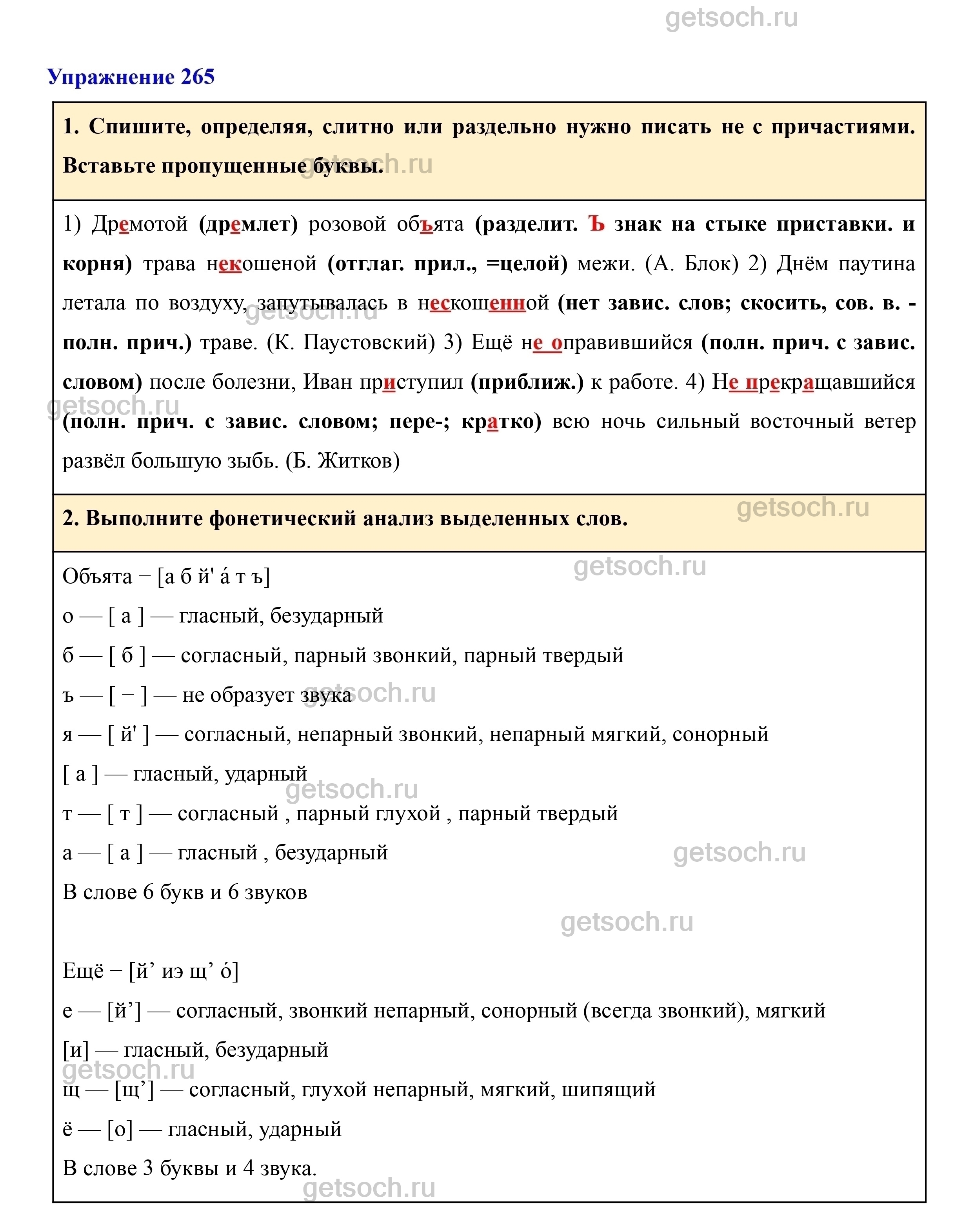 Рассмотрим ответы на Упражнение 265 из учебника по русскому языку для 7 класса Разумовской