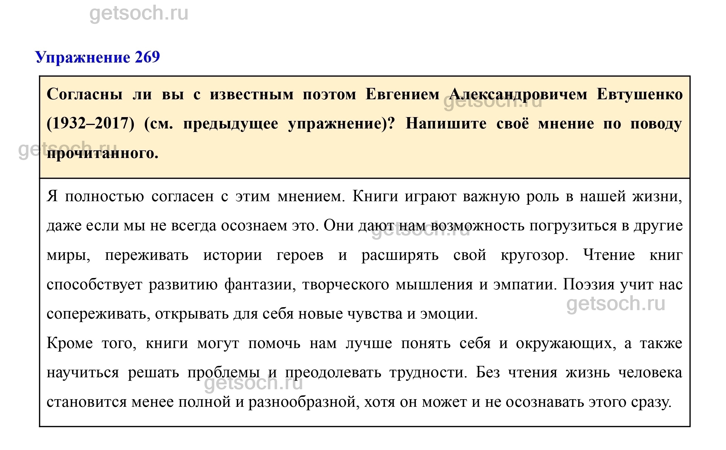 Согласны ли вы с известным поэтом Евгением Александровичем Евтушенко (1932–2017) (см. предыдущее упражнение)? Напишите своё мнение по поводу прочитанного.