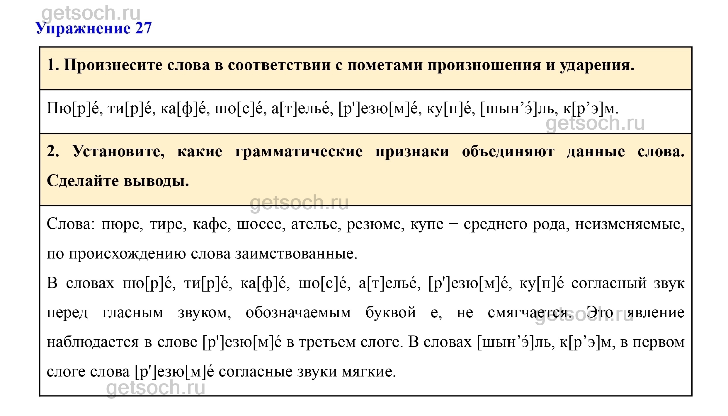 Рассмотрим ответы на Упражнение 27 из учебника по русскому языку для 7 класса Разумовской