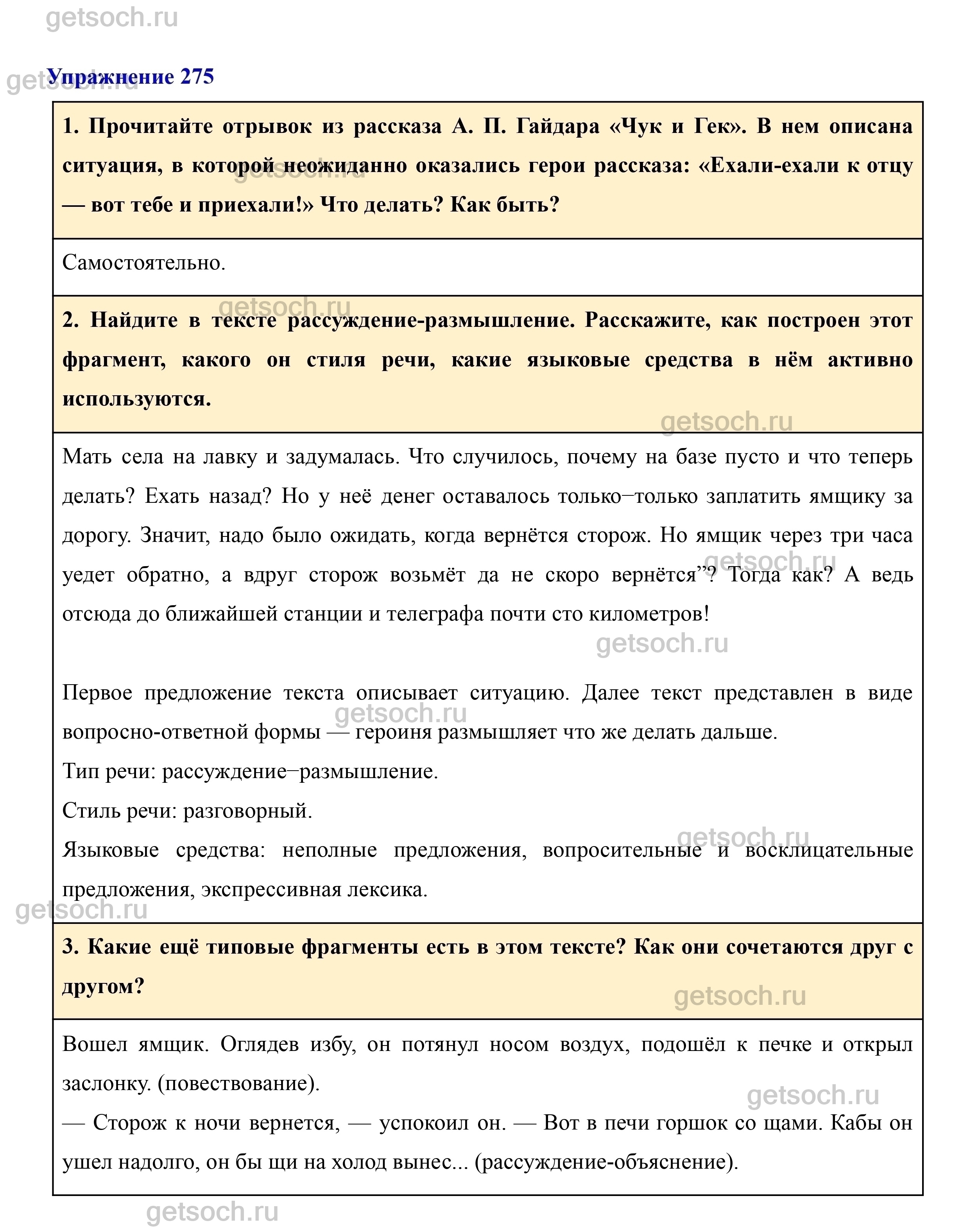 Рассмотрим ответы на Упражнение 275 из учебника по русскому языку для 7 класса Разумовской