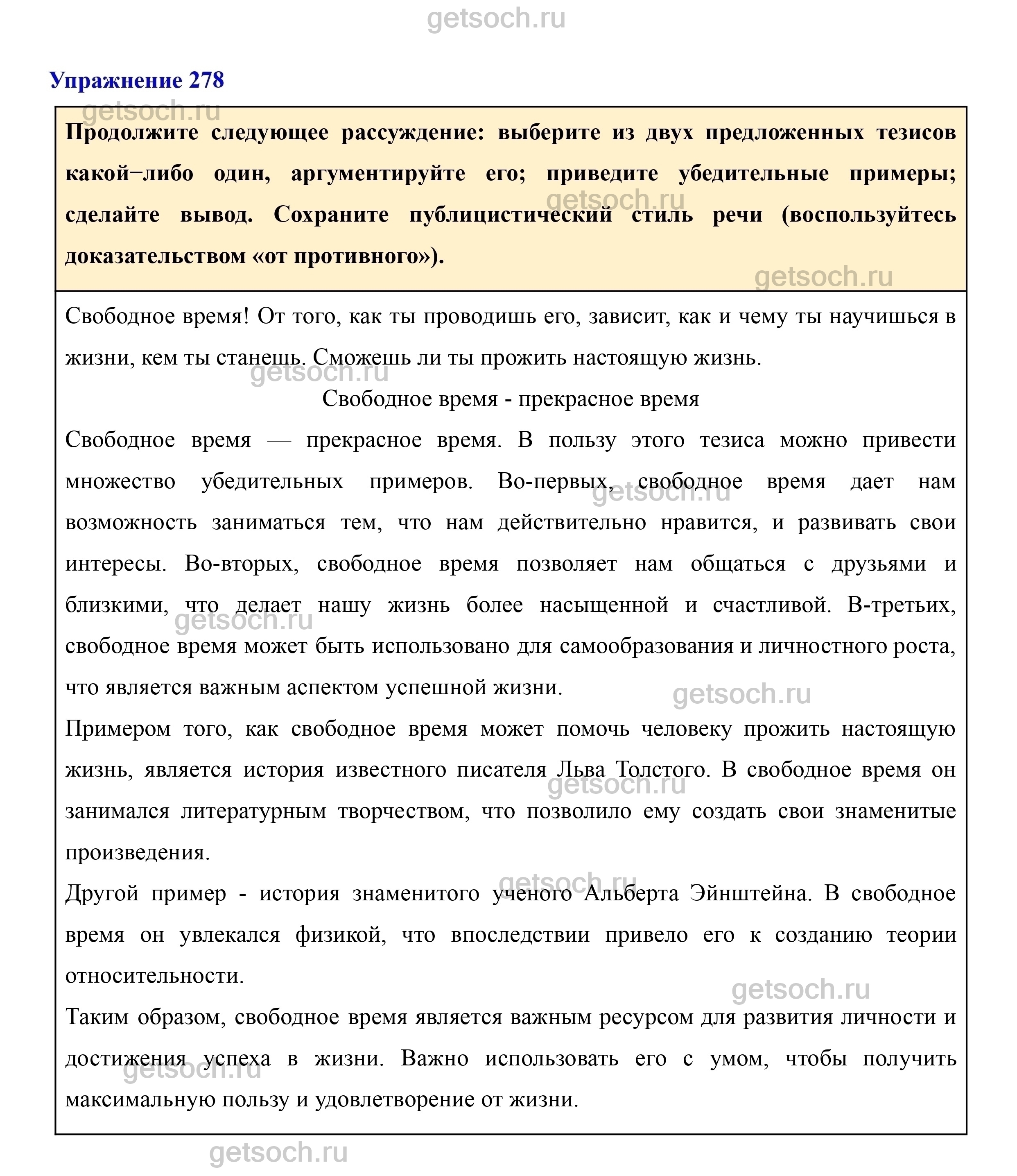 Рассмотрим ответы на Упражнение 278 из учебника по русскому языку для 7 класса Разумовской