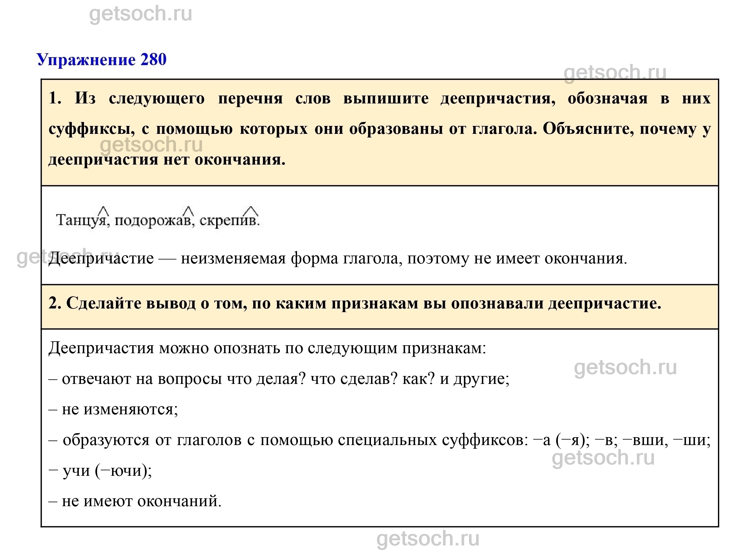 1. Из следующего перечня слов выпишите деепричастия, обозначая в них суффиксы, с помощью которых они образованы от глагола. Объясните, почему у деепричастия нет окончания.