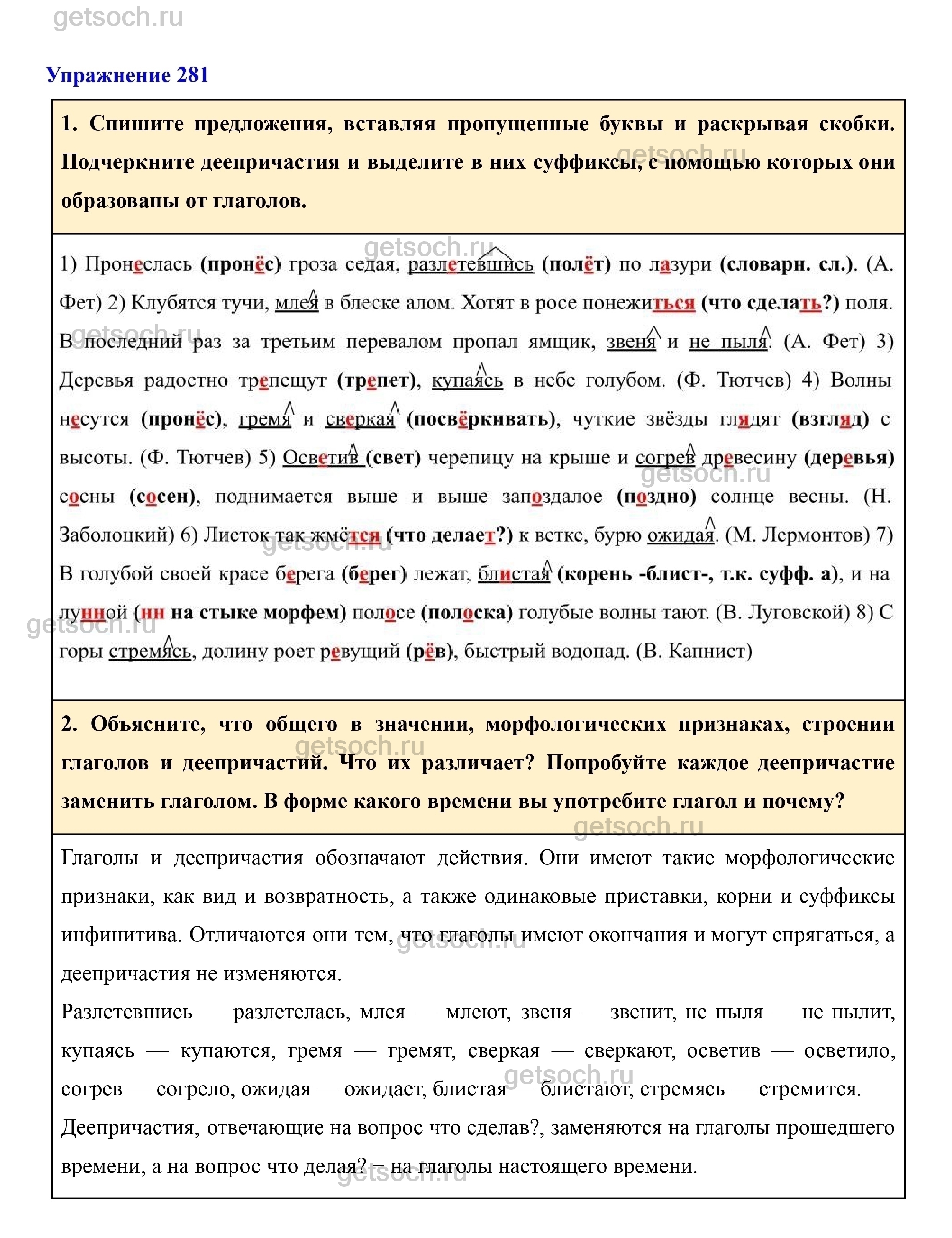 Рассмотрим ответы на Упражнение 281 из учебника по русскому языку для 7 класса Разумовской